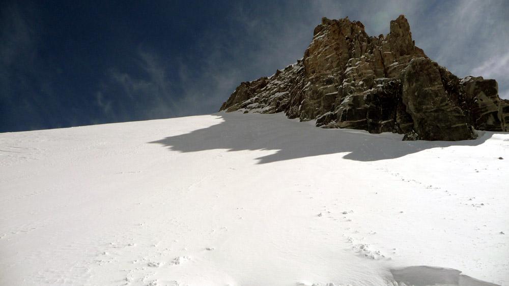 Scivolo nevoso a sx della cresta W pendenza max 45° attacco dal Col des Toules occidentale.