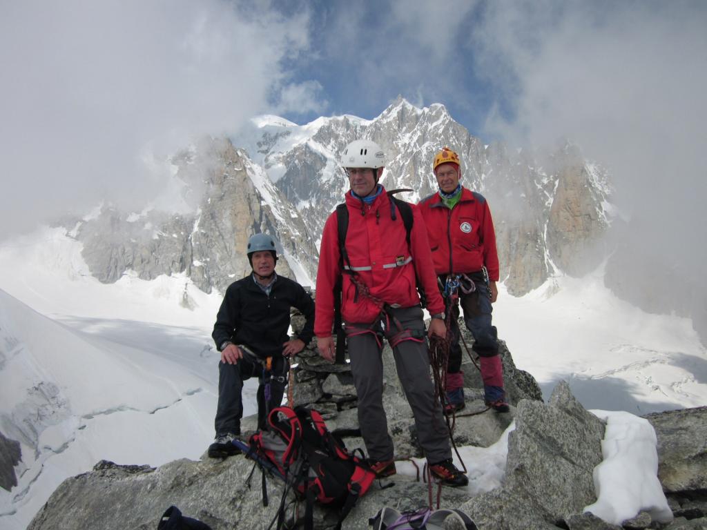 Partiti dal rifugio Torino alle 8,15 avendo usufruito della prima funivia, abbiamo fatto questa bella progressione su ghiacciaio in salita e su rocce (sfasciumate) in discesa; è stato utile come allenamento in quota. Appena arrivati nebbia a 360 gradi, poi col tempo ci sono state schiarite intervallate dalla nebbia. Eravamo due cordate: io ed Eugenio e block65 con Flavio.