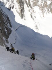Grazie alla giornata stupenda e le temperature basse, in giro c’era una moltitudine di alpinisti, sopratutto sull’Aiguille d’Entreves.