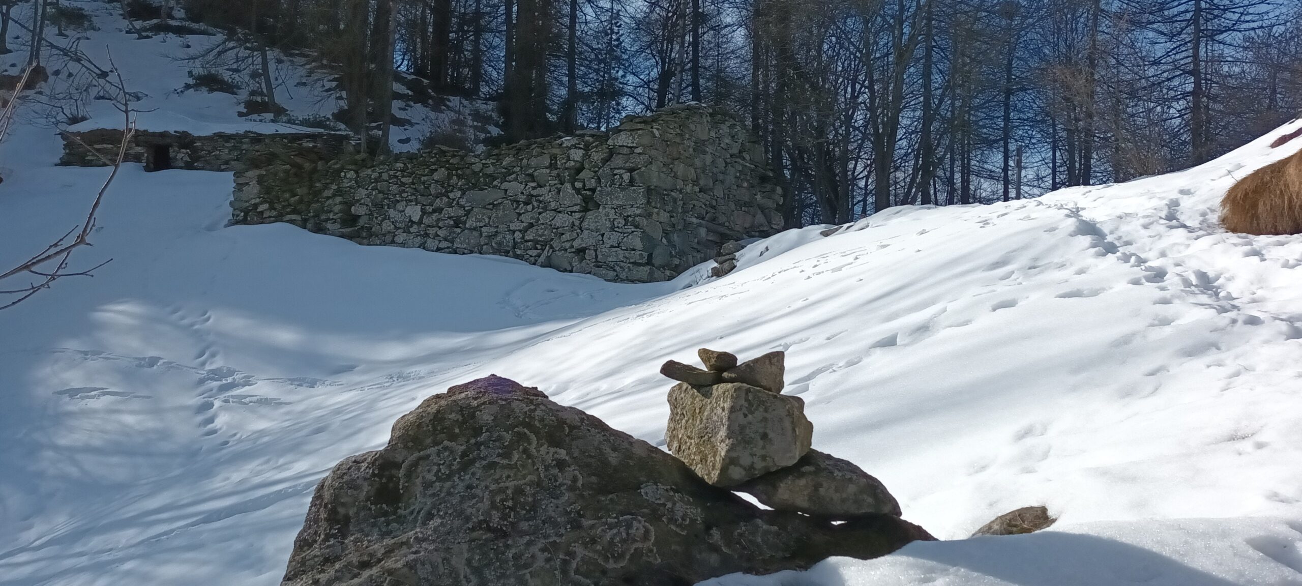 Da Bracchiello fino all’Alpe Tourn. Sentieri 243 e 240 molto ben segnalati da bolli b/r. Purtroppo le foglie secche sul sentiero rendono la salita molto faticosa, specialmente dopo Monaviel e nell’ultimo tratto prima dell’Alpe, dove è presente un po’ di neve mista a ghiaccio. Decido di non percorrere l’anello per evitare il lungo tratto di strada provinciale che da Ala di Stura riconduce a Bracchiello.