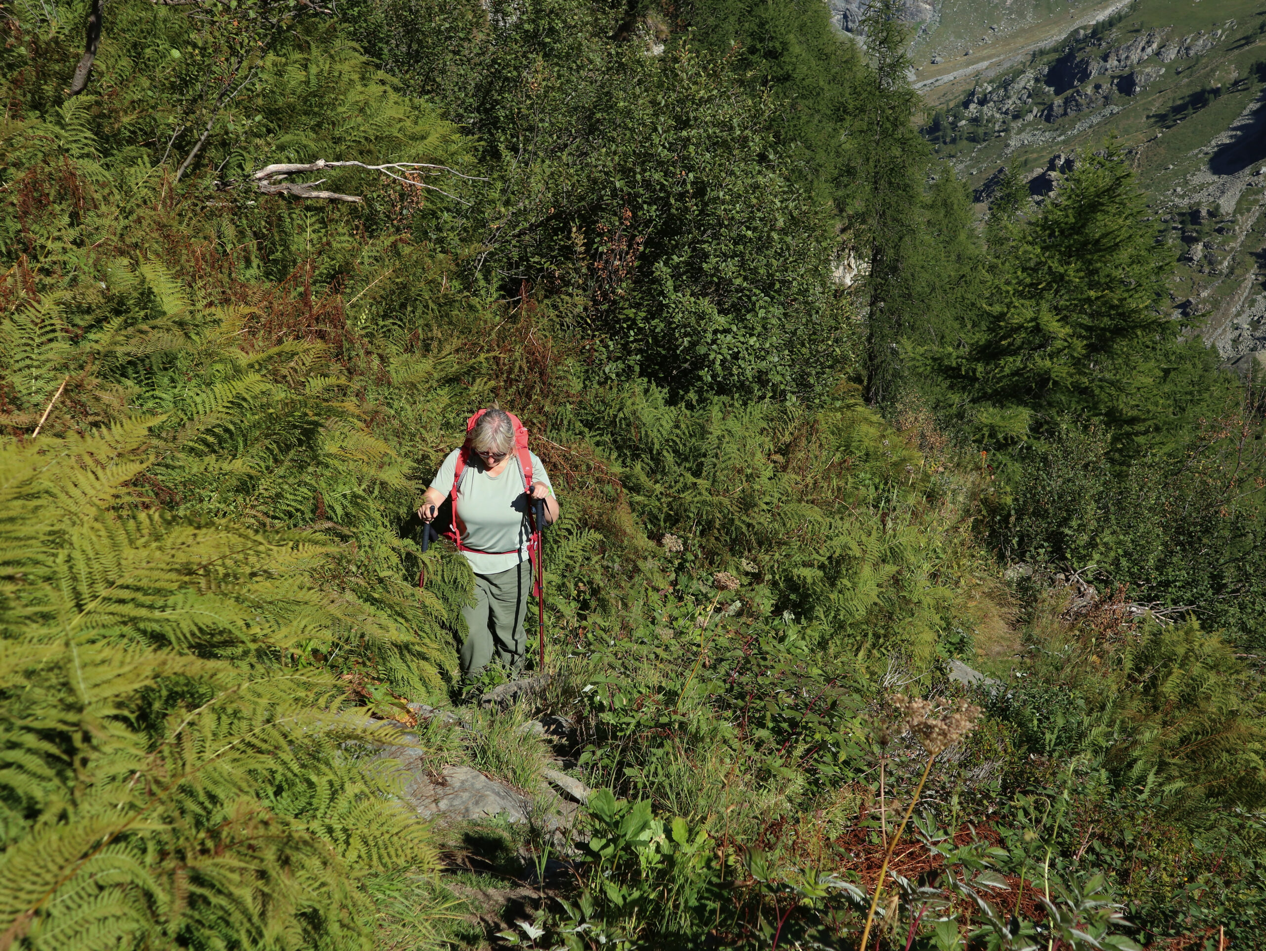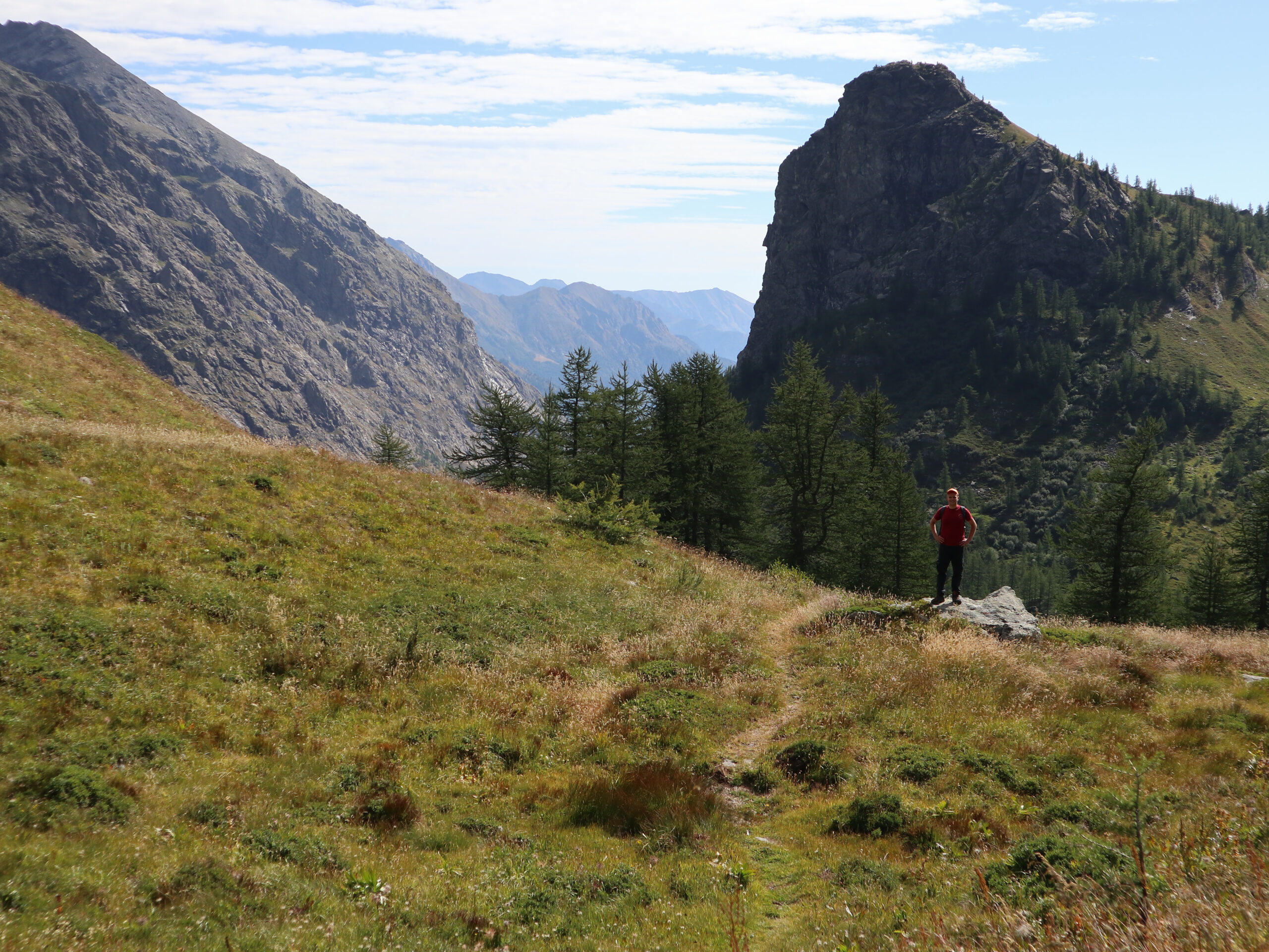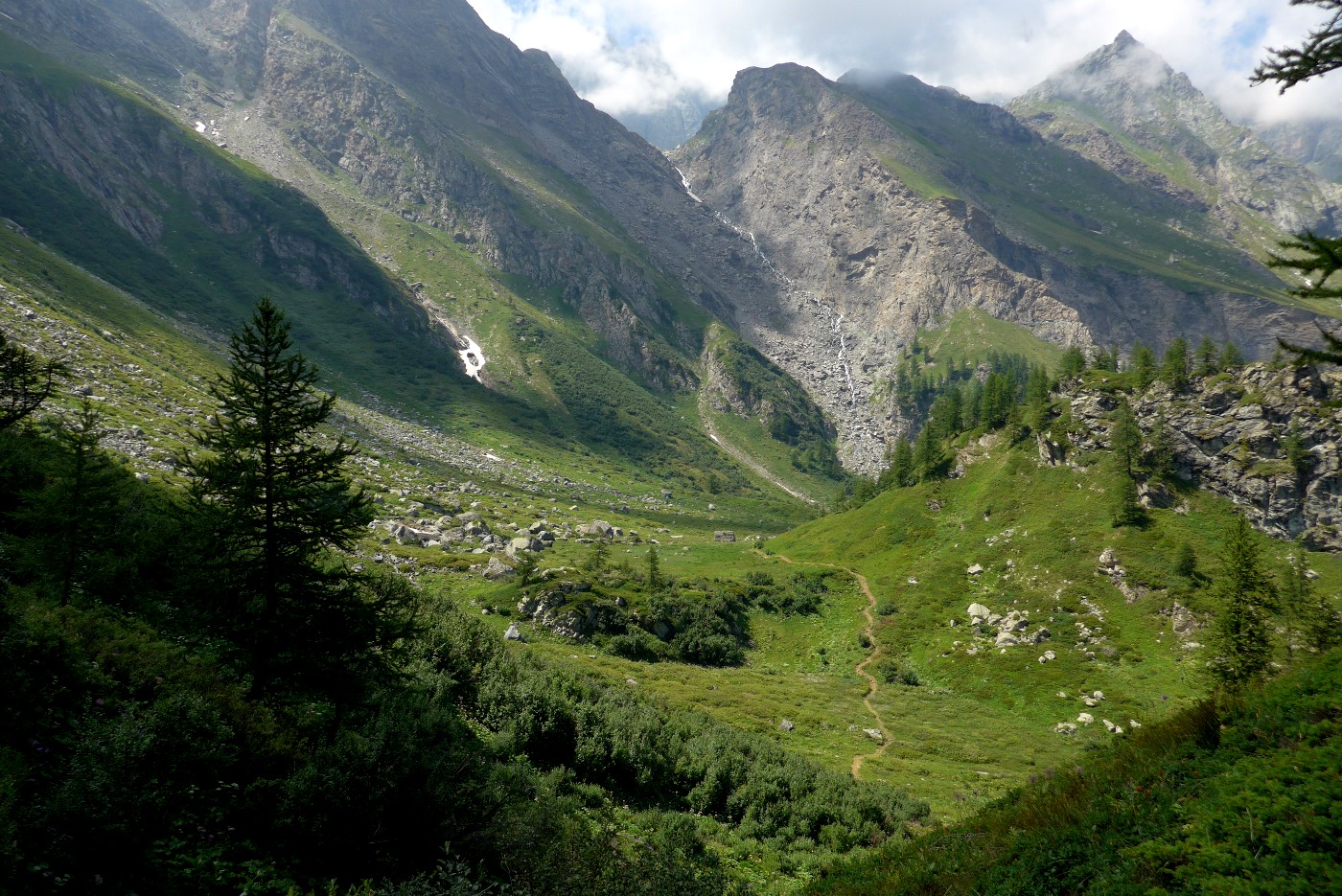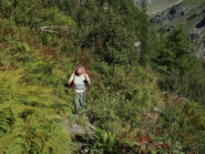 Il sentiero scende nel vallone dopo la Rocca, superando un torrentello. Dopo un breve tratto si riattraversa il torrente, con qualche difficoltà se vi è molta acqua.