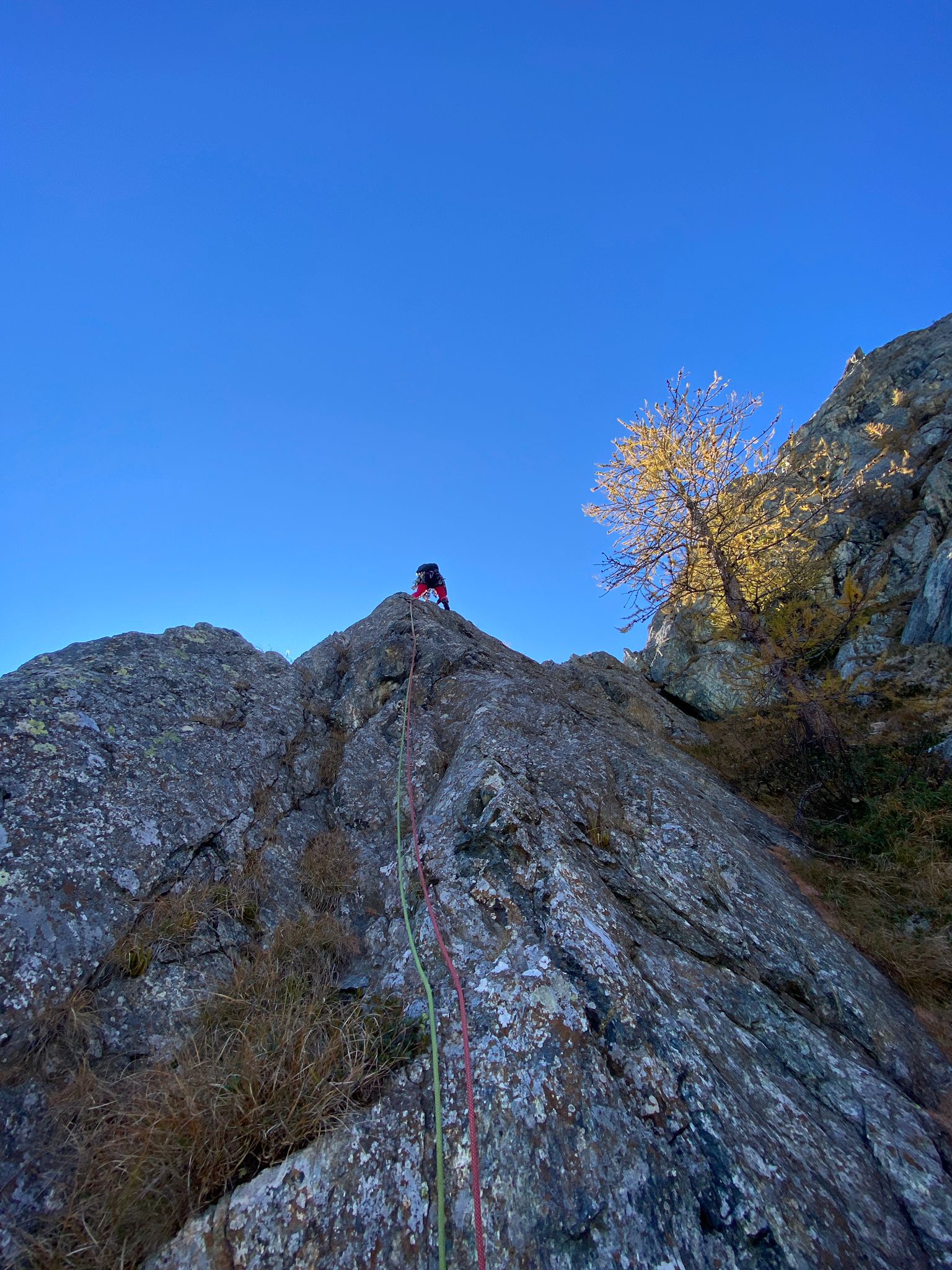 - L1 – placca in aderenza, sosta su un larice. 5a