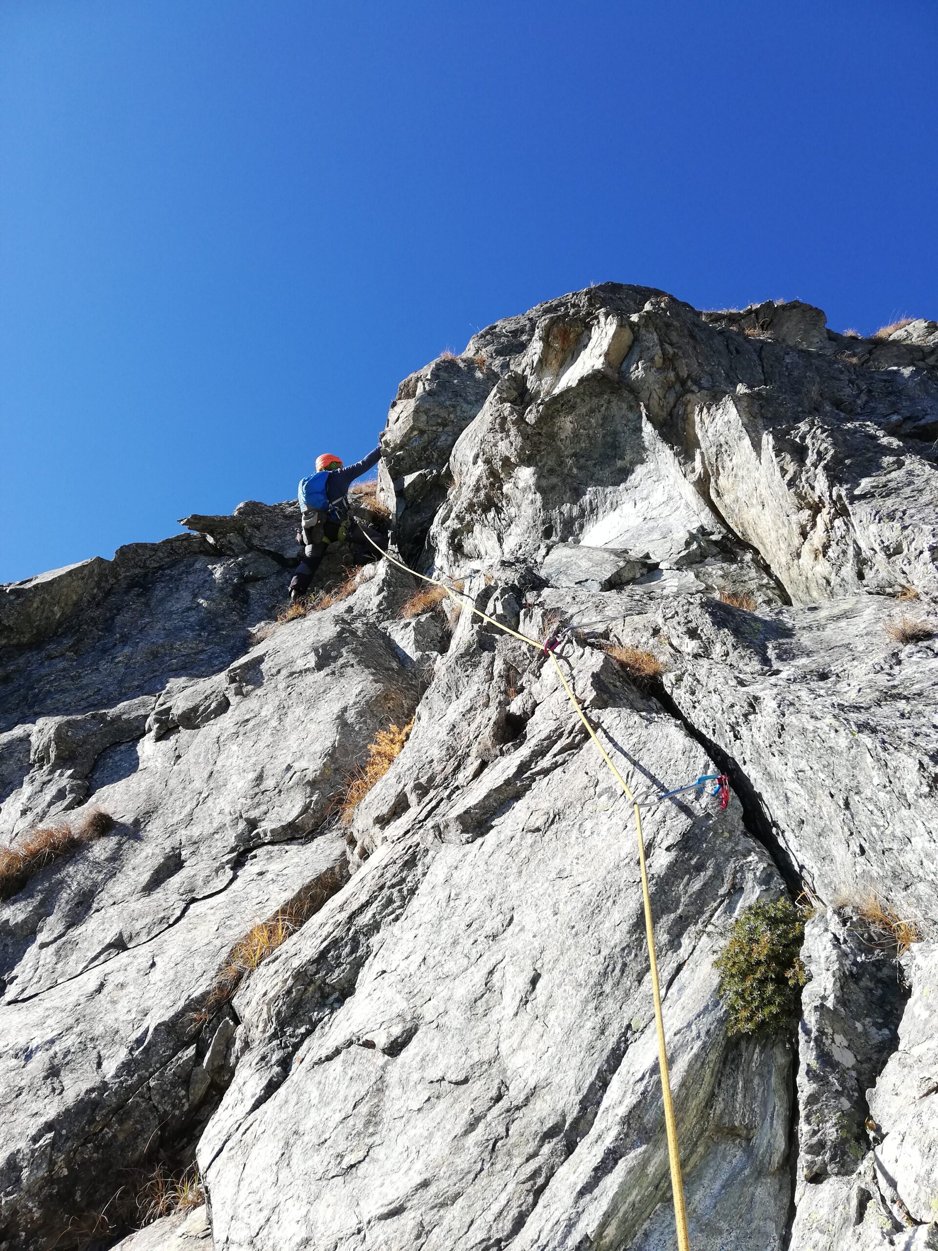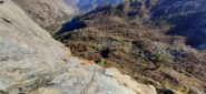 - Sulla terrazza, raggiungere in 20 m. la base di un evidente spigolo e sostare.