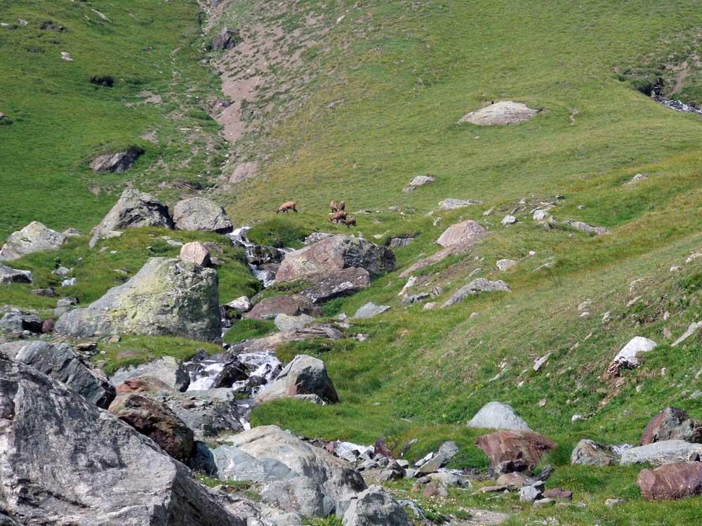 Si scende nel vallone sempre seguendo il 27 fino al bivacco Gontier (chiuso), c’è una fontana presso la retrostante casa PNGP.