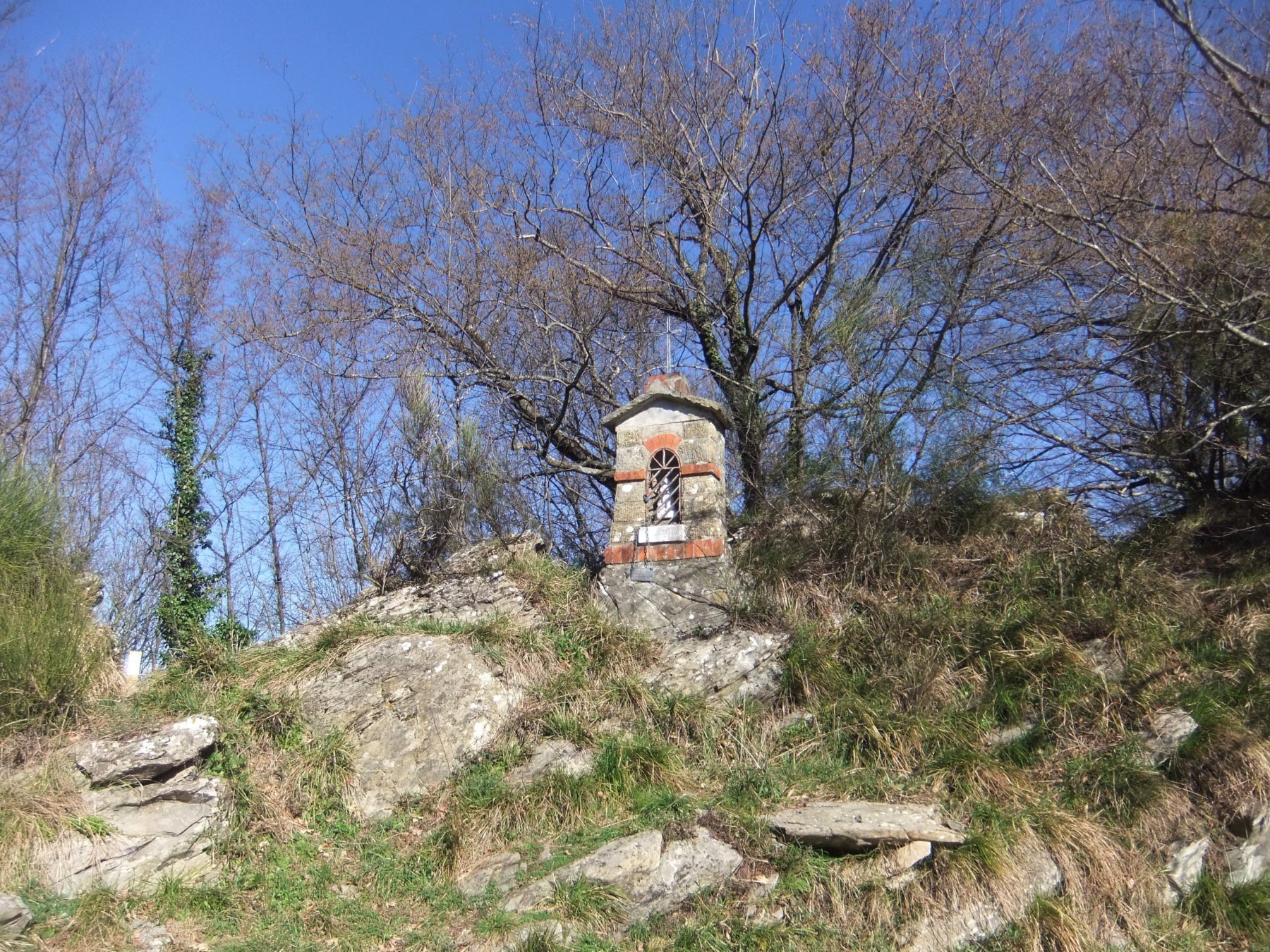 Dall’ incrocio , il sentiero taccato ” 2 quadrati rossi ” si sposta brevemente sul versante nord ma poi torna su quello sud, aggirando l’ infrascato Monte Groppo ed arrivando alla Colla (525 m. , edicola). A destra, seguendo sempre il segnavia , si sale al Monte Carmelo (567 m. , capanno) e dopo si scende al Passo dell’ Anchetta (474 m.), dove si trova l’ asfalto. Si segue sino alle poche Case del Monte (trattoria) e poi quasi sino alla cima del Monte Anchetta (533 m., ripetitore).
