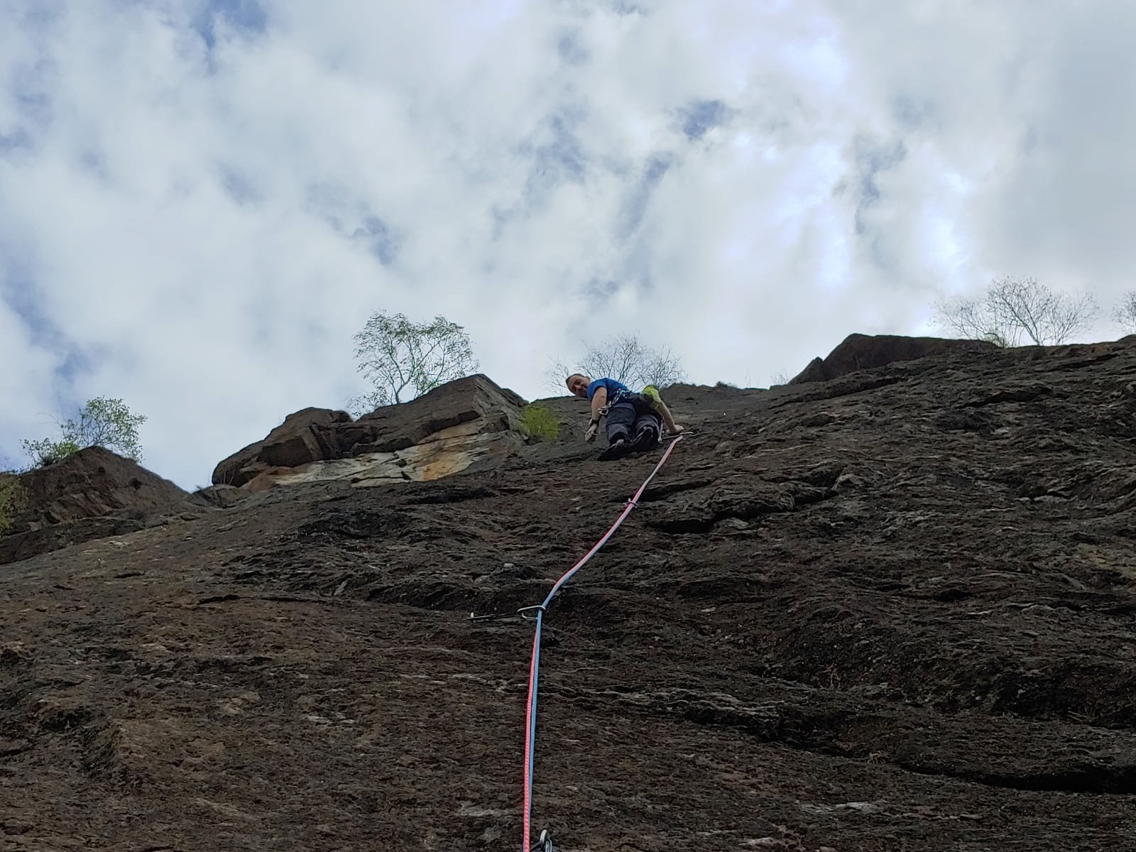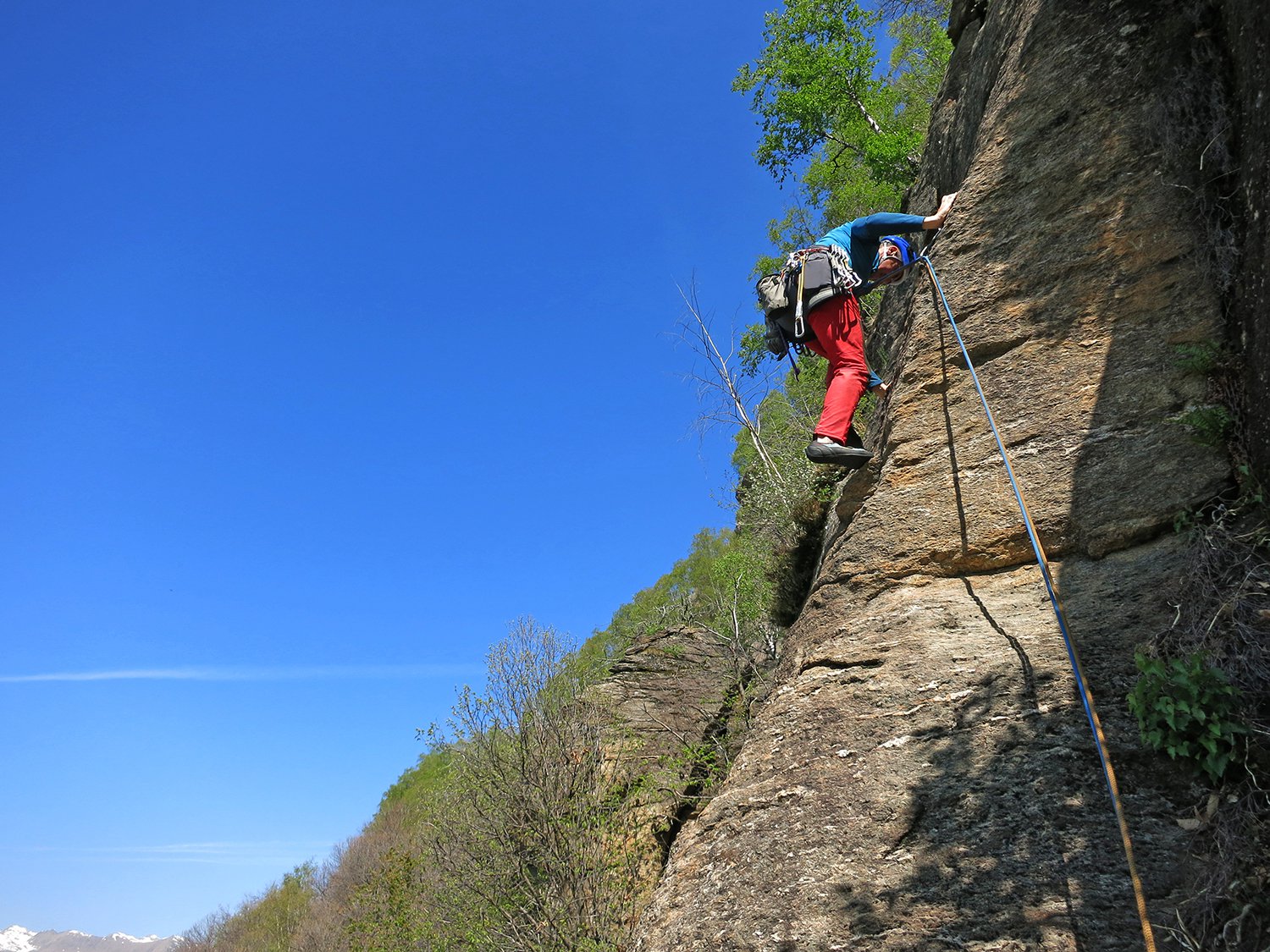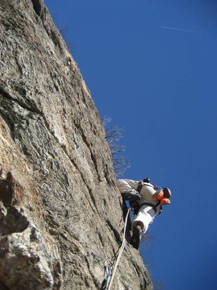 La via consta di tre tiri per un totale di una sessantina di metri.