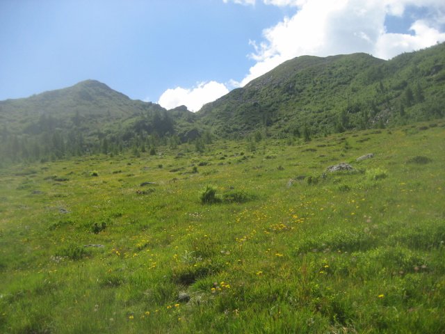 Si prosegue nella stessa direzione per poche decine di metri e, dopo avere passato un rio, svoltare a sinistra (Sud Sud Est) seguendo una buona traccia di sentiero che raggiunge la Bocchetta dei Fornei, m. 2000.