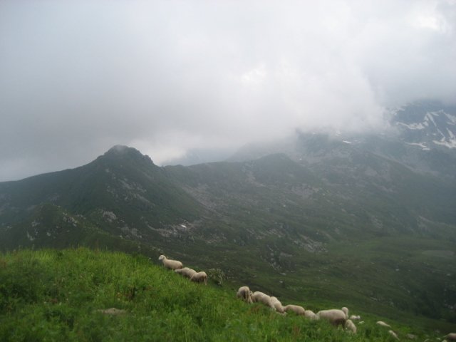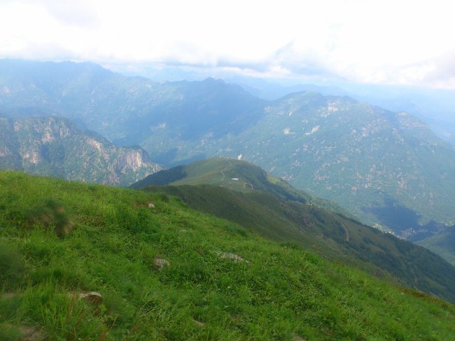 Continuare sempre sulla larga dorsale erbosa che, dopo una lieve depressione, sale alla rotondeggiante cima erbosa del Testone dei Tre Alpi, m. 2081. Scendere su terreno facile alla depressione della Colma Colora, m. 2023, dalla quale un’ultima breve risalite conduce sul Monte Bò di Valsesia, m. 2071. Scendere la cresta opposta a quella di salita fino a raggiungere il piccolissimo Lago del Pizzo e, subito dopo, l’alpe omonima, m. 1704, situata su uno sperone roccioso.