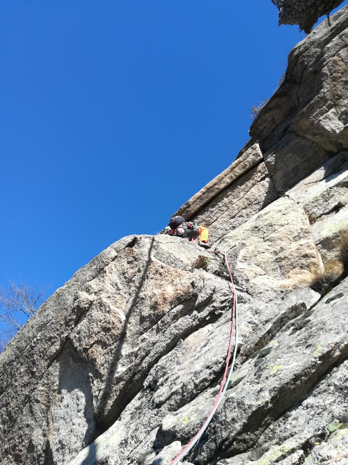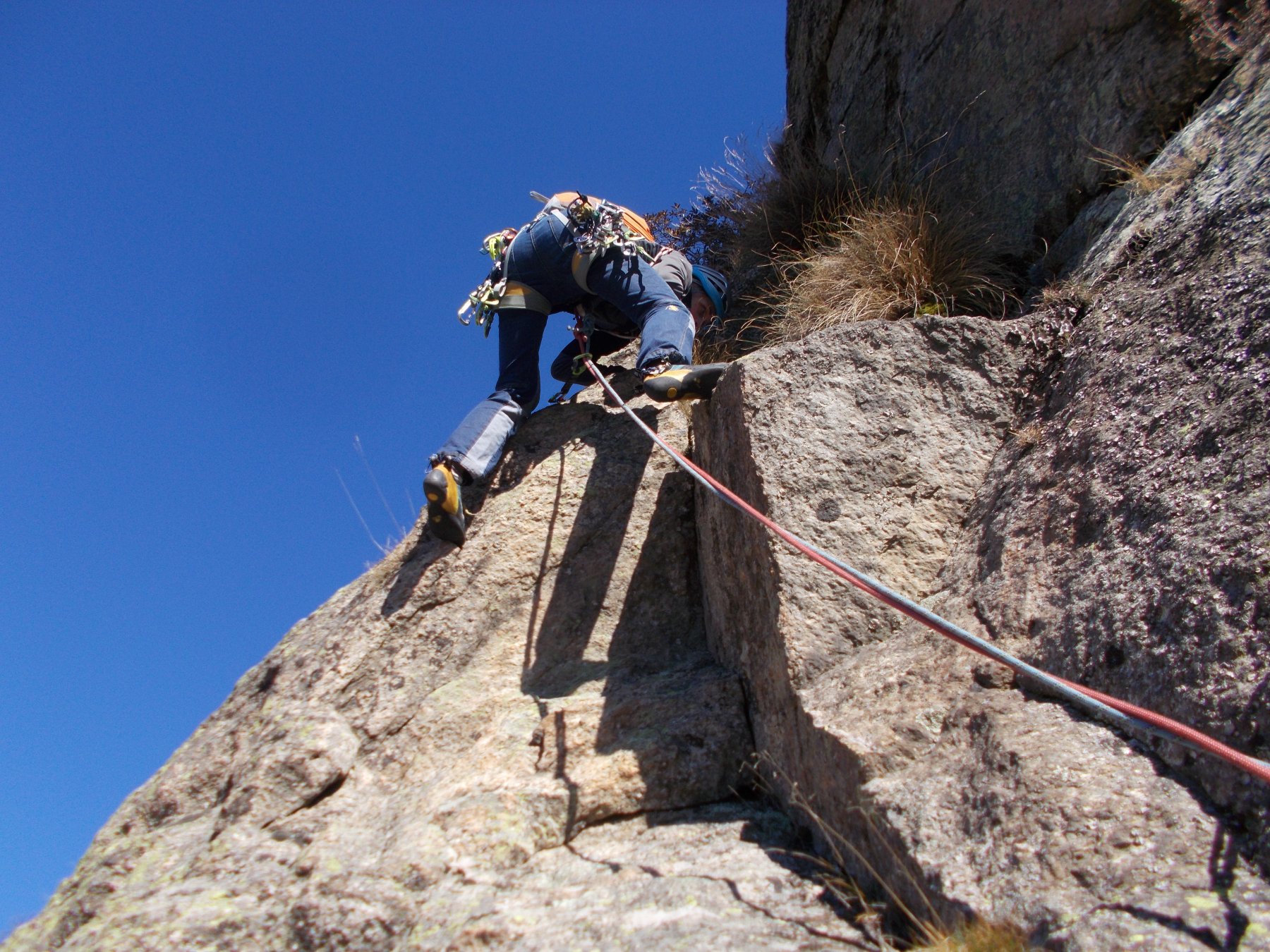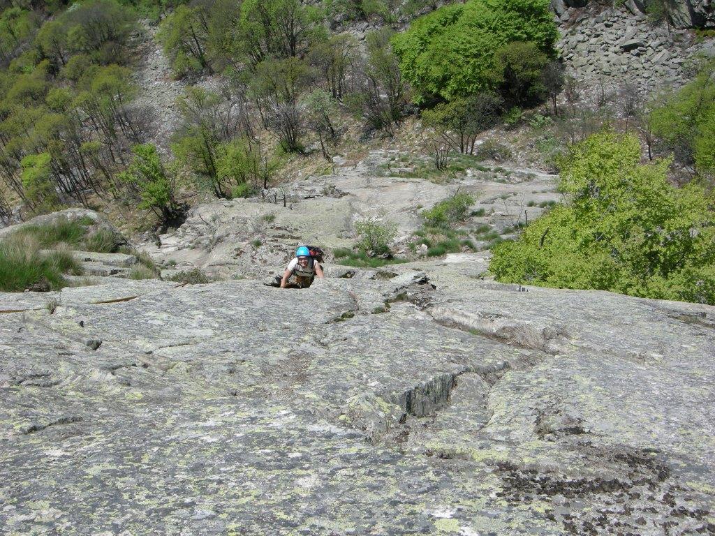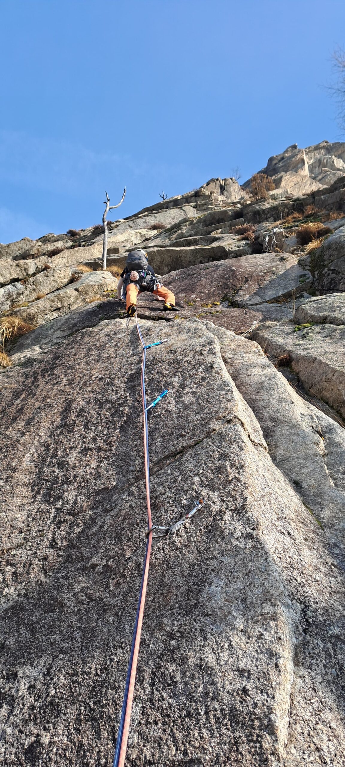 - L6 tiro in comune con spigolo sud 3c seguendo lo spigolo, nessun spit se non 1 in cima prima della sosta per superare un piccolo tetto 5c ma volendo aggirabile a sx.