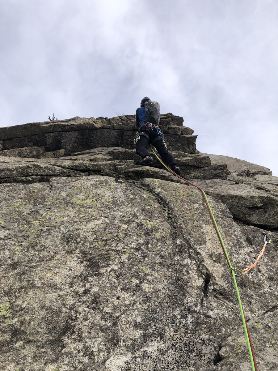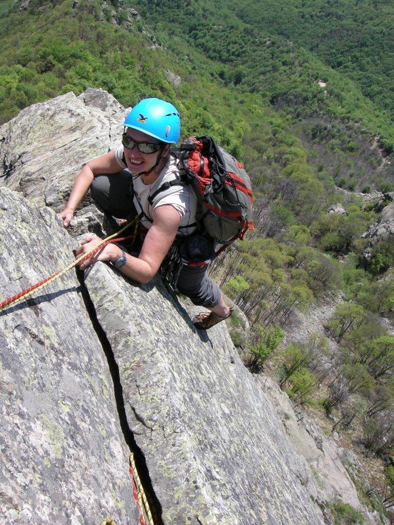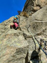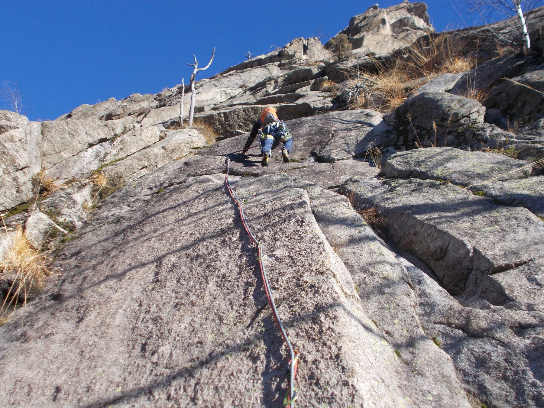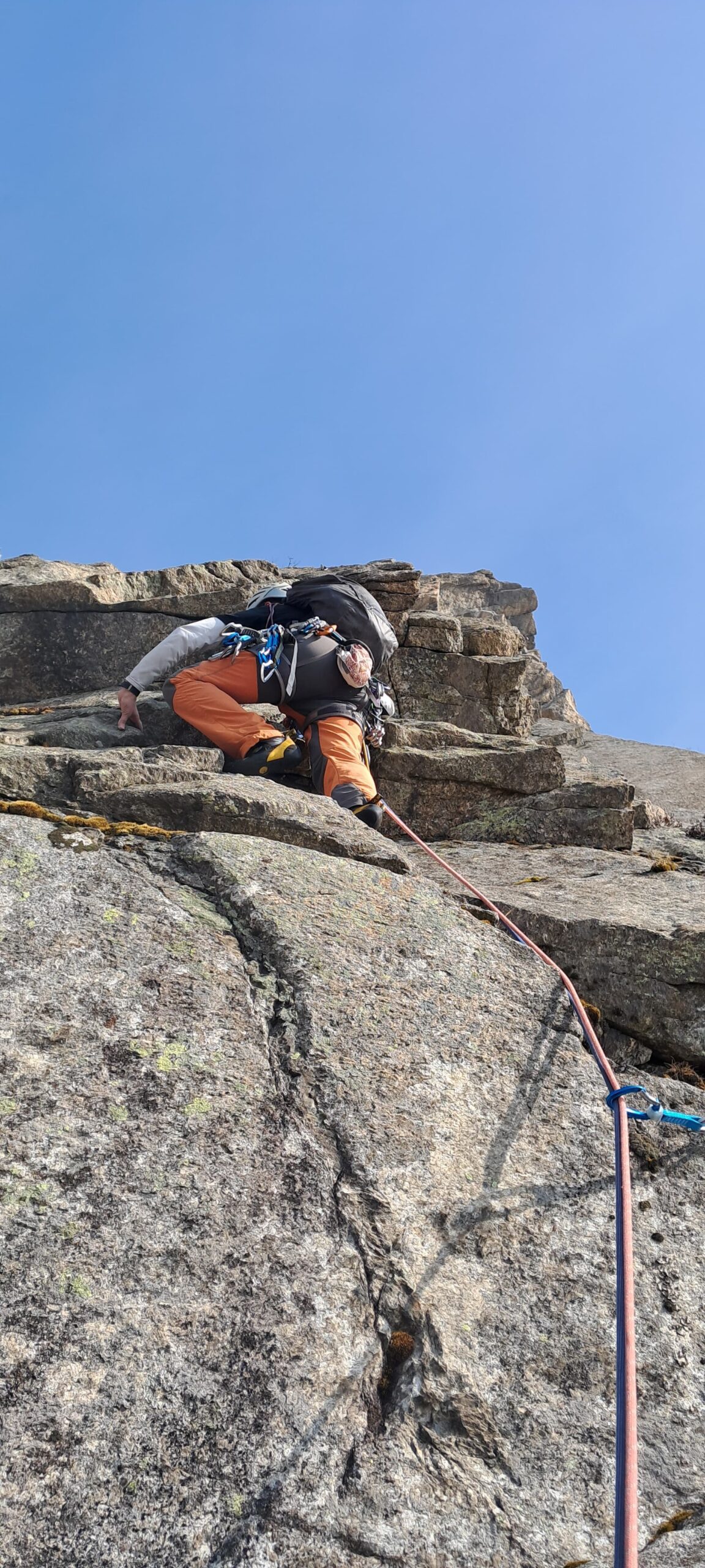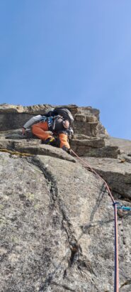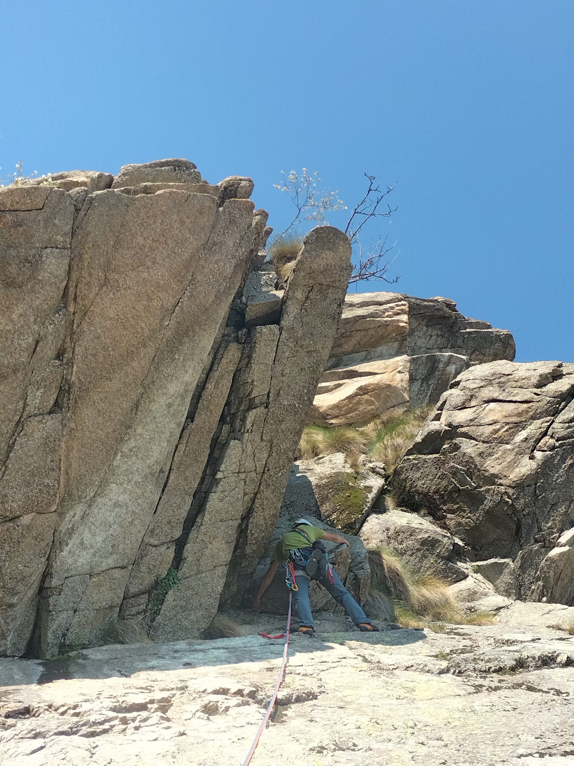- L6 tiro in comune con spigolo sud 3c seguendo lo spigolo, nessun spit se non 1 in cima prima della sosta per superare un piccolo tetto 5c ma volendo aggirabile a sx.