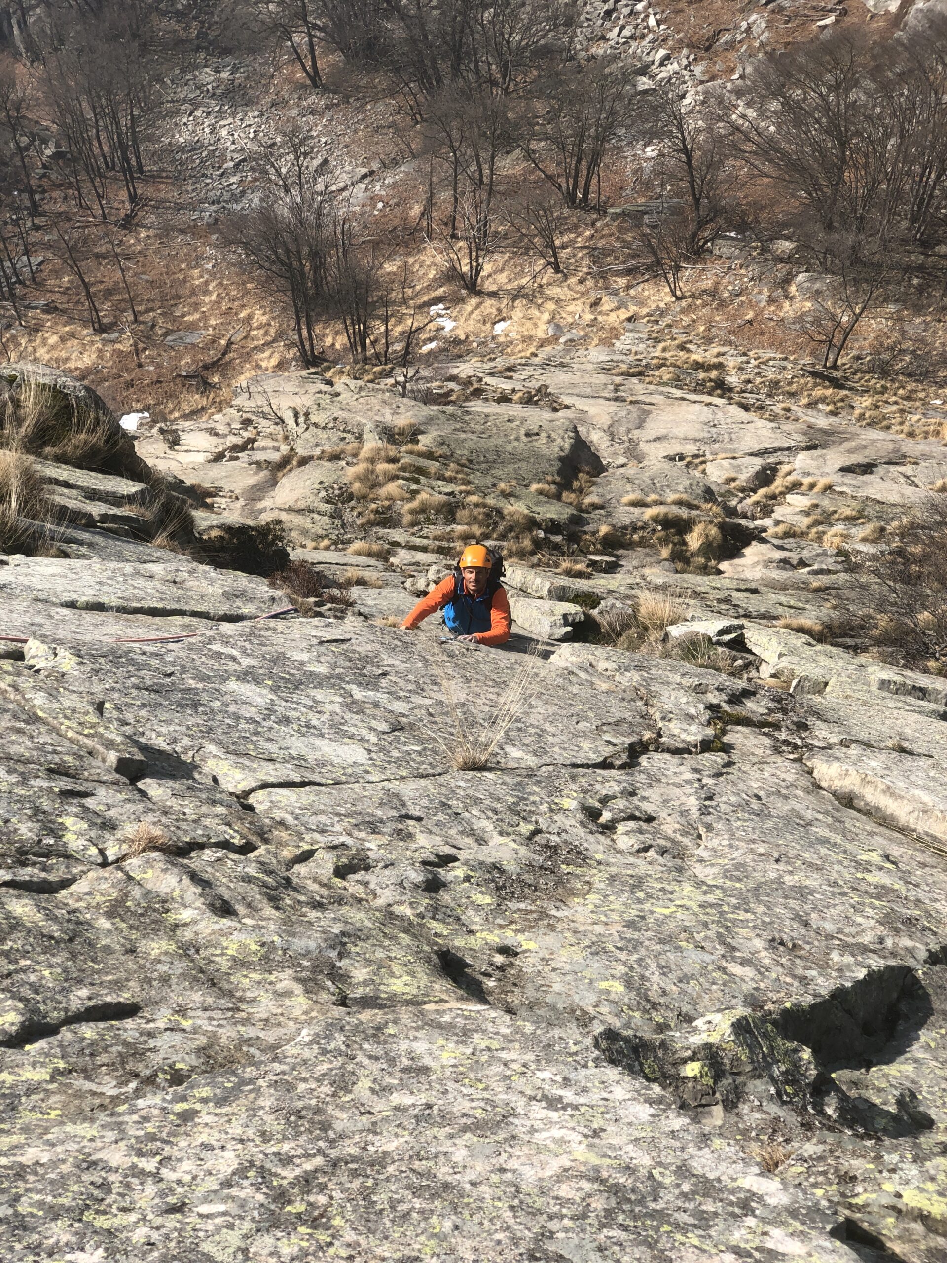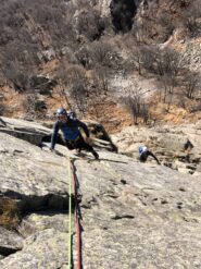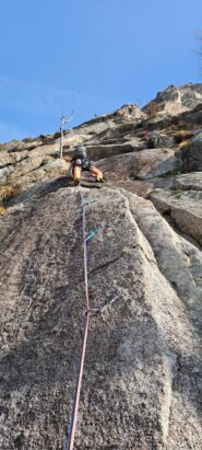 - L3 placca iniziale poi diedro camino 5c ribaltamento a sx e comoda sosta.