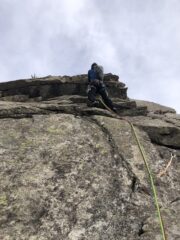 Ribadisco i miei elogi per questa via: bellissima… Roccia, movimenti, varietà, chiodatura, solitudine… ripeto di nuovo la via e sento dagli amici gli stessi commenti entusiasti che avevo proferito io la prima volta.