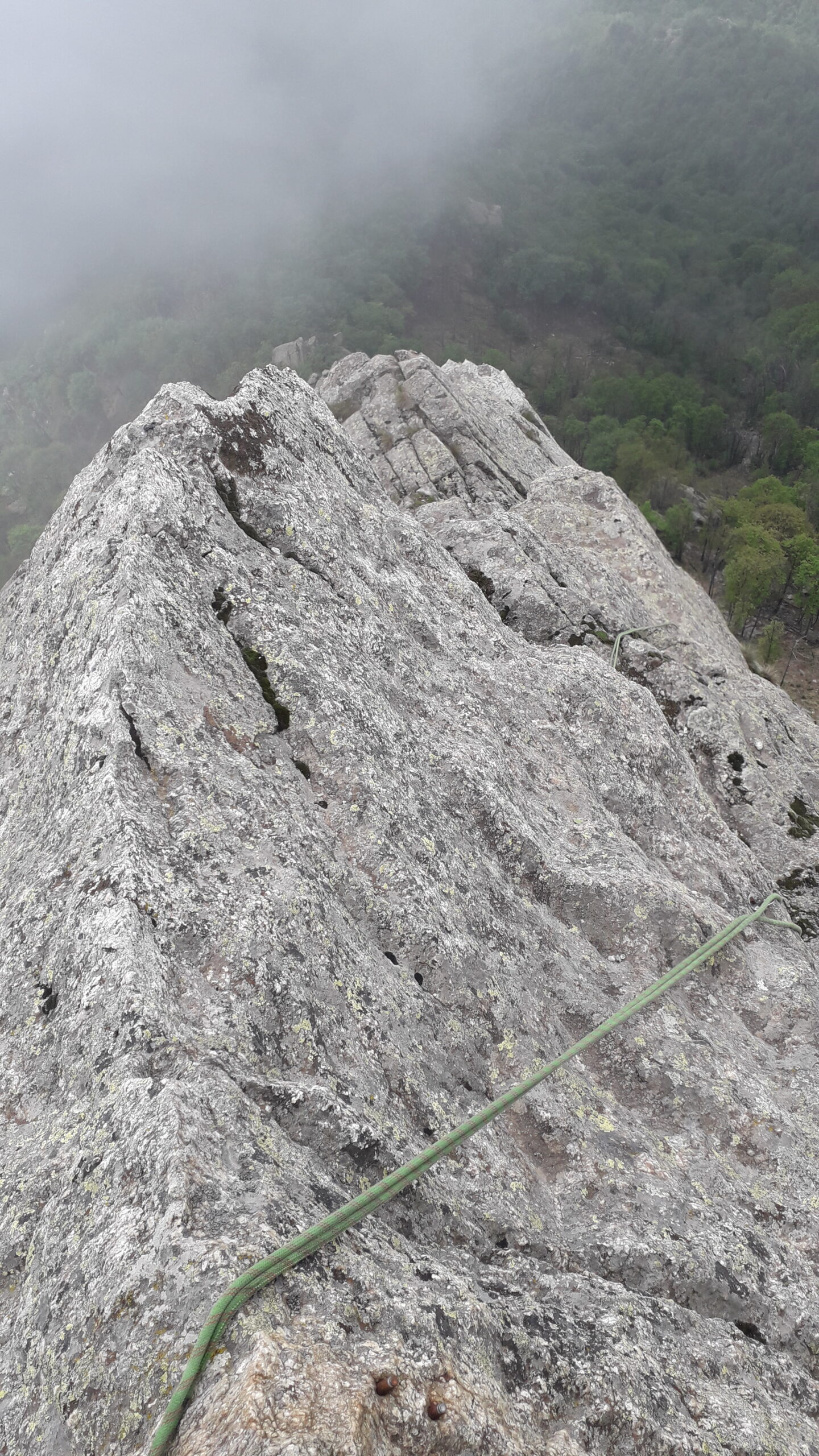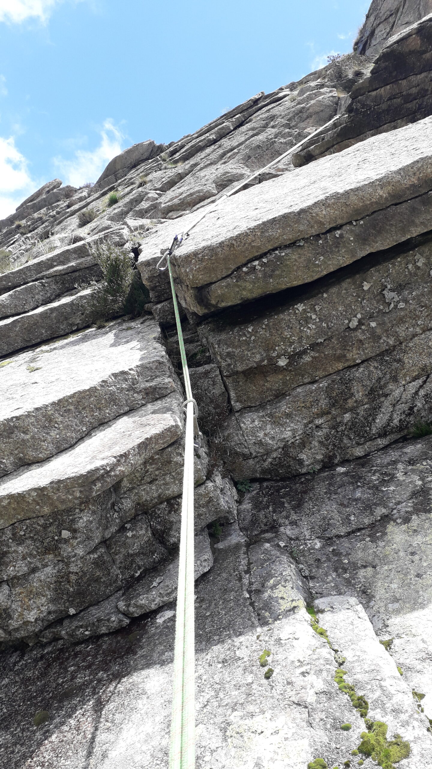 Avevo in mente lo spigolo sud, mi son trovato invece a dover fare i conti con questo vione che per quanto trovato duro e’ stato di soddisfazione comunque. Tra doppie e risalite tiro dopo tiro in massima sicurezza con corda saldamente ancorata alle relative soste, ne vengo a capo in un paio di orette buone buone.