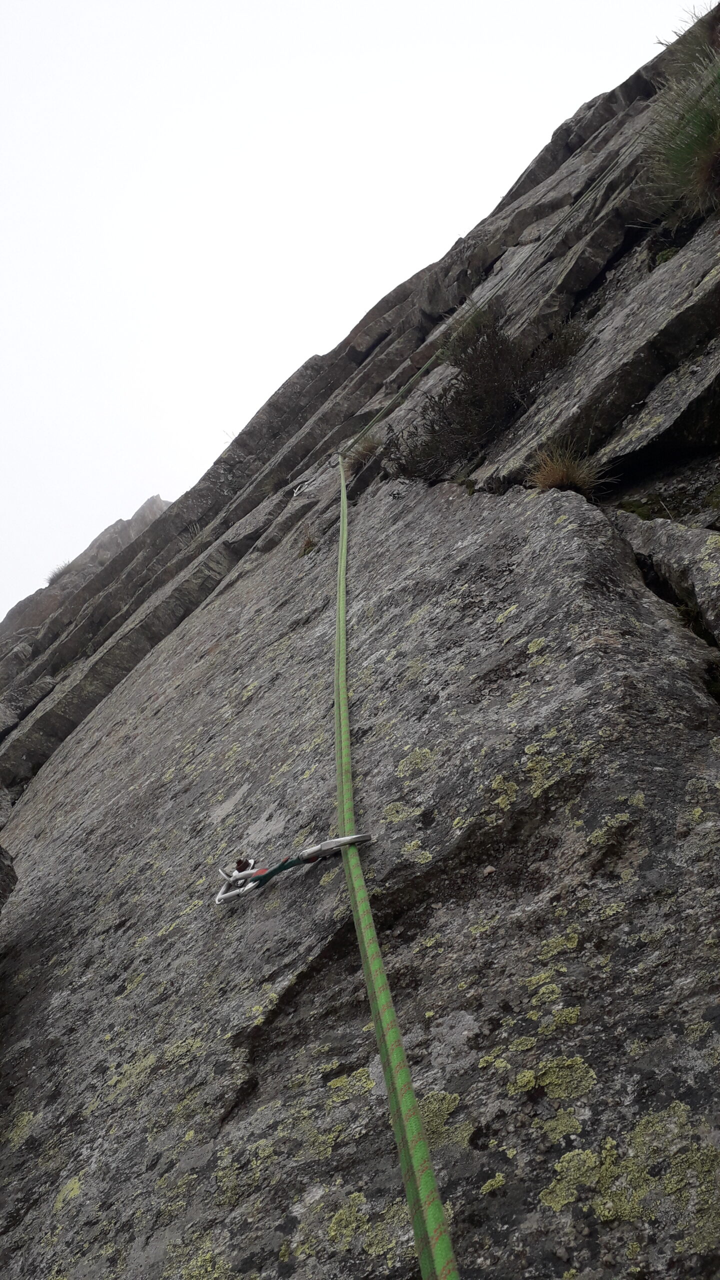 Mi e’ volato giu il discensore in fase di manovra in sosta a meta’ parete, subito pronto il trucchetto per calare in sicurezza comunque, per le ancora restanti doppie da fare. Ritrovato sull’erba una volta giunto alla base a via ormai completata.