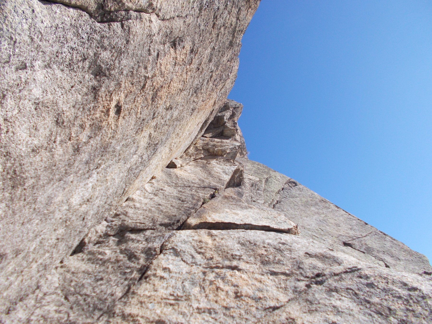 L5 – 4a 25mt: tratto in comune con Spigolo Sud: seguire il diedro-cengia verso dx fino a sbucare su una cengia che sovrasta la parete est e sostare. (22/11/2015 – il chiodo che protegge la cengia è saltato; il 06/12/2015 il chiodo è stato ripristinato)