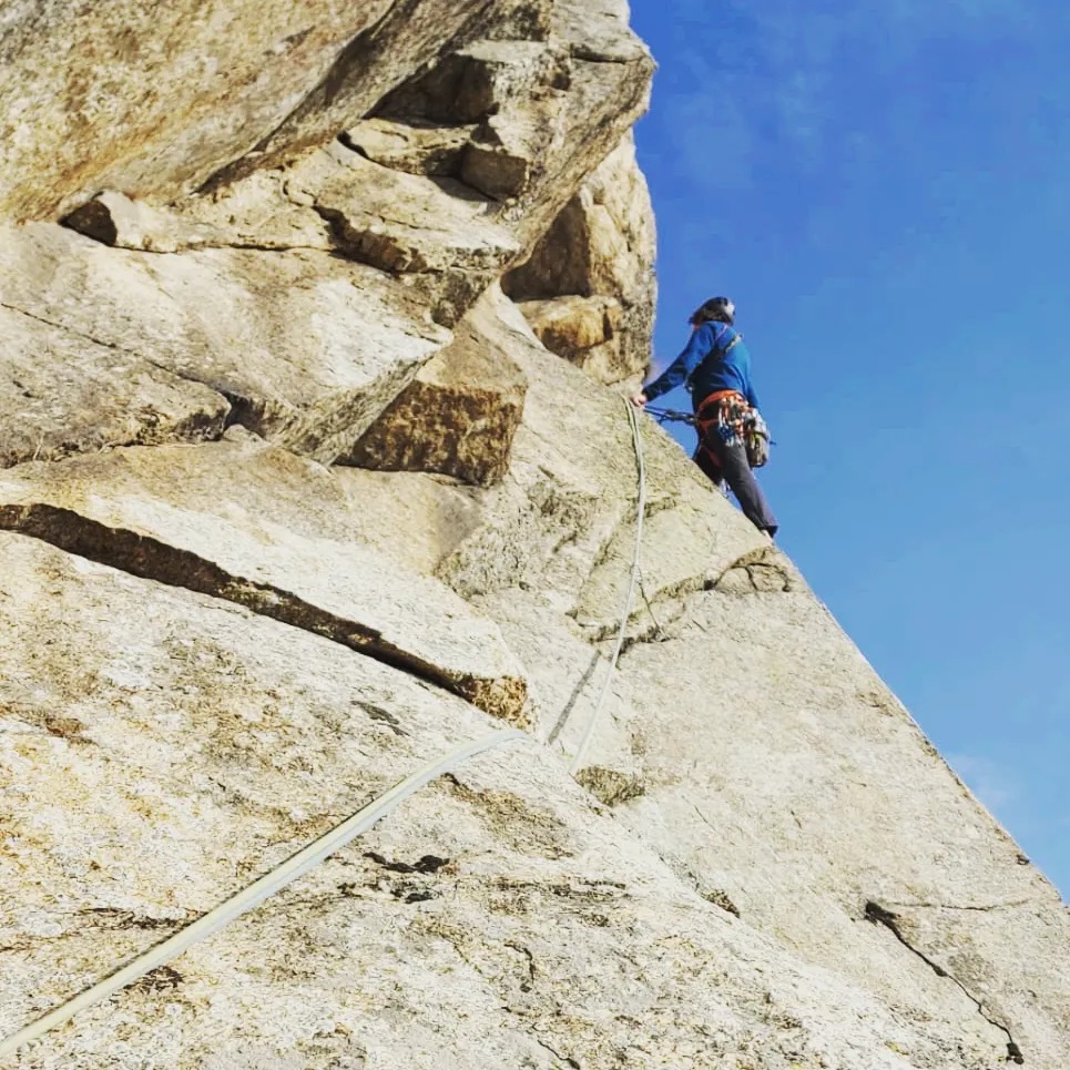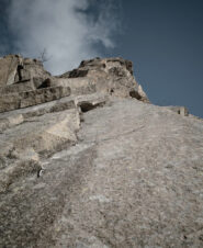 L7 – 5a 25mt: Affrontare un ultimo diedro, raggiungere l’aereo filo di cresta a sx e seguirlo fino in vetta.