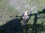 Discesa veloce su sentieri e mulattiera verso il Rif. Barbara, dove si imbocca il dirimpettaio sentiero per il colle Armoine-Manzol, salita inizialmente molto dura, poi più dolce nella parte mediana, per poi impennarsi bruscamente dopo aver imboccato a ds il sentiero per il col Manzol.