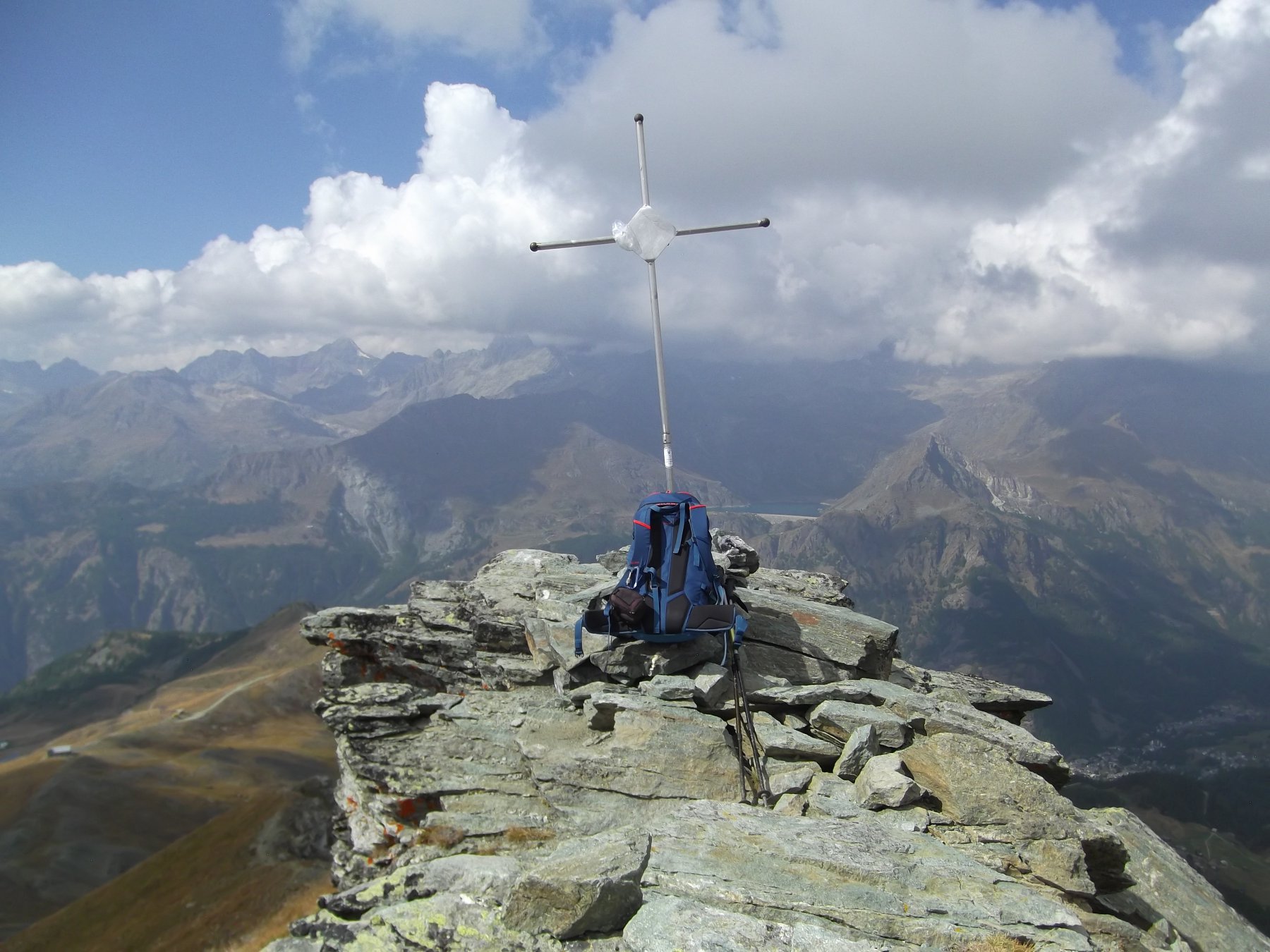 Altra stupenda gita in Valtournenche e come da itinerario lo svolta con una mattinata ben soleggiata, fino ad arrivare alla Becca Trecare dove iniziava qualche nube e poi a tornare al Colle Croux per seguire la divertente e facile cresta fino alla Punta Falinere (m.2763) dove pranzo, poi con piu’ nubi e qualche goccia, seguo la cresta per la Punta Fontanafredda per scendere in cresta al Colle Cheneil e per comoda mulattiera a Cheneil e all’auto terminando la bella gita. Un saluto agli escursionisti incrociati tra cui il primo del Tor de Geant e buona montagna.
