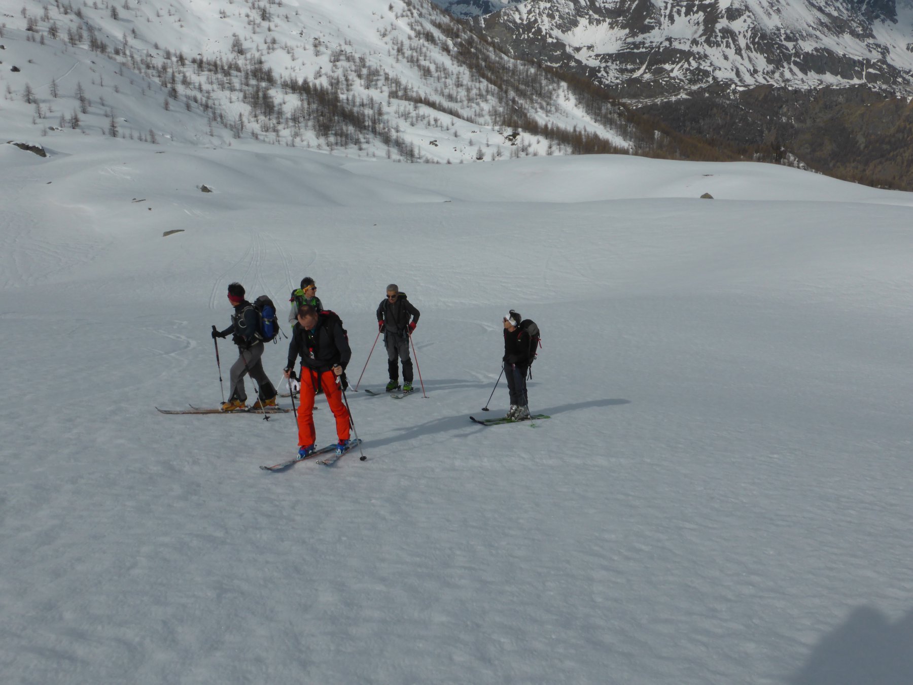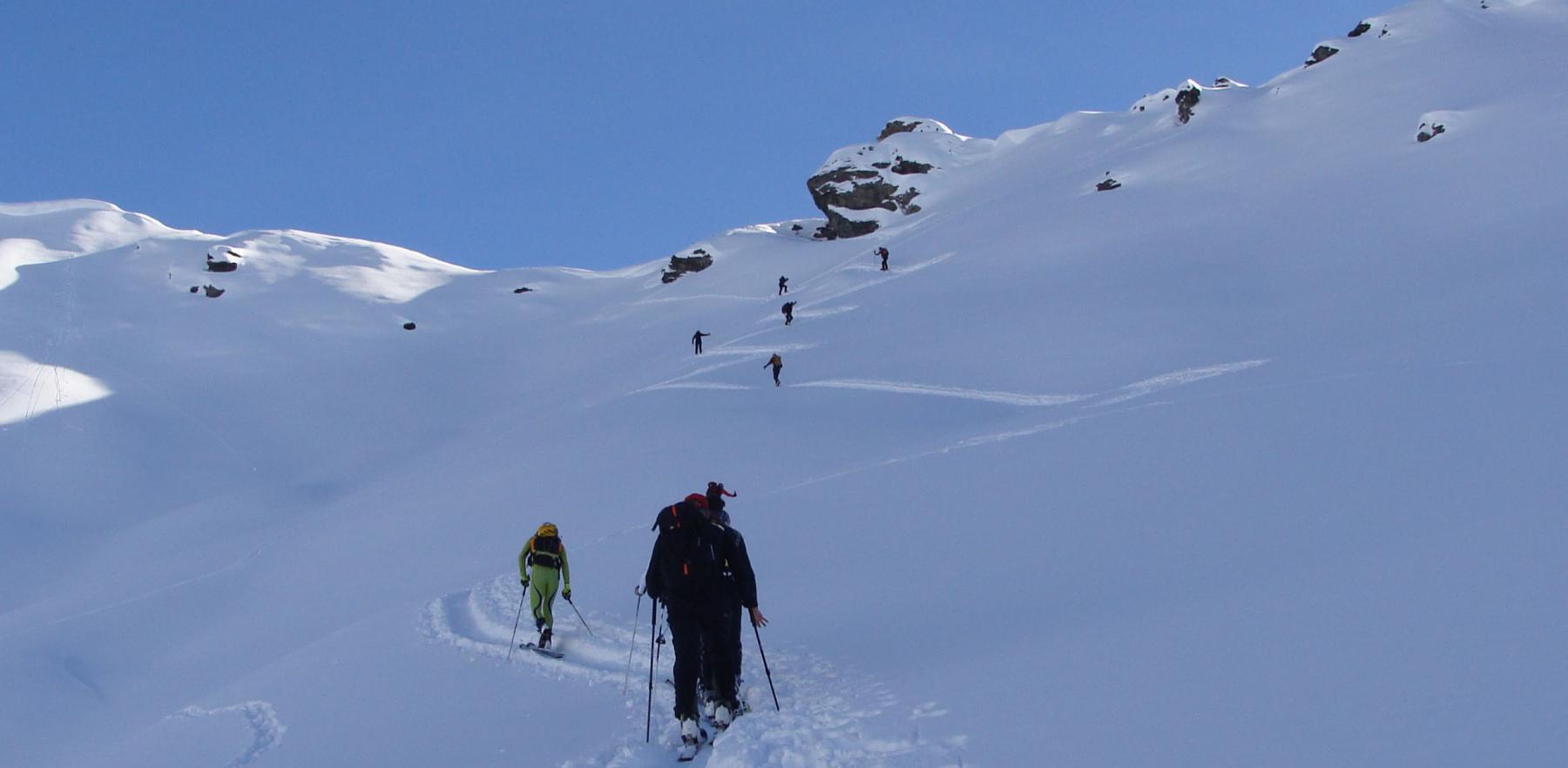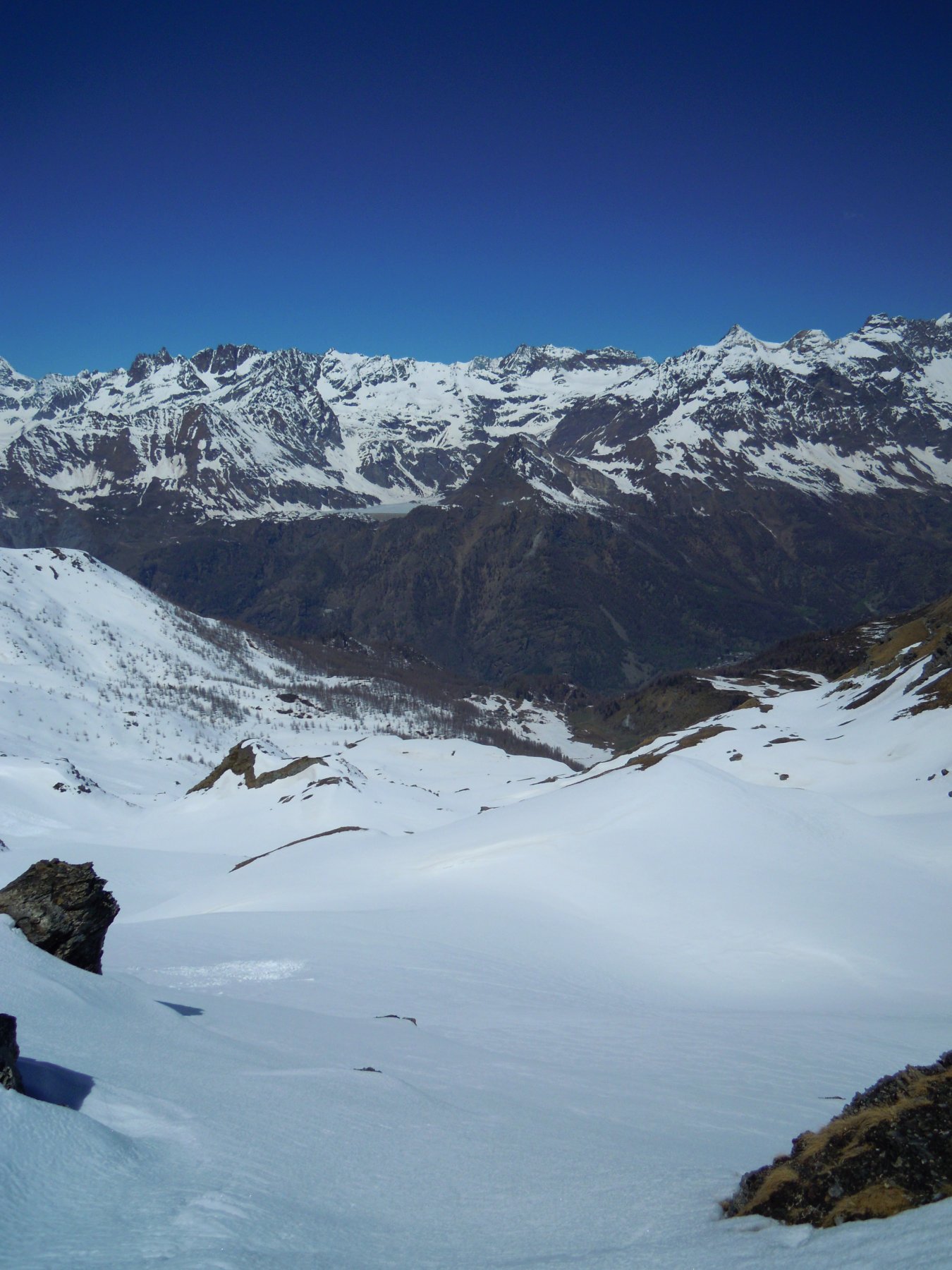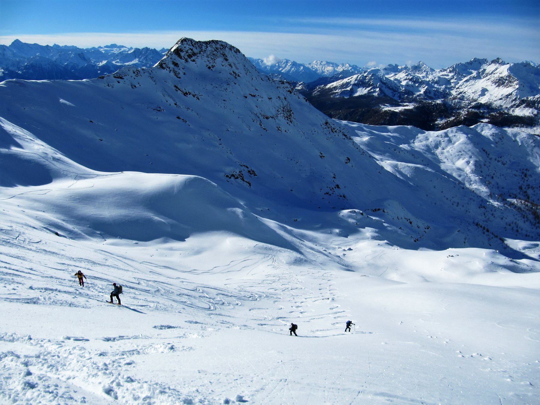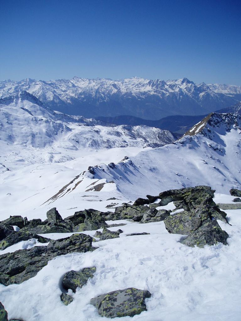1. Salire al col di Croux ( o des Fontaines), quindi per cresta (alcuni tratti affilati) fino in punta sci ai piedi.