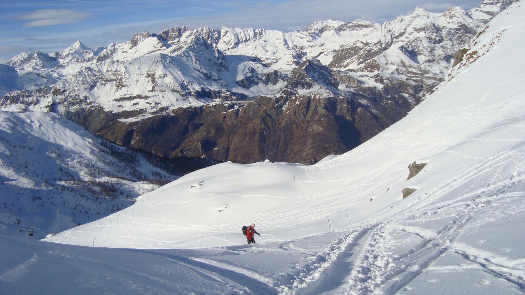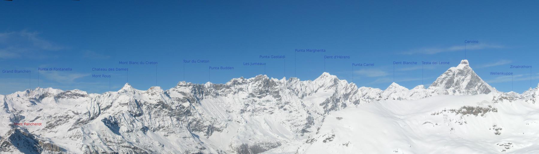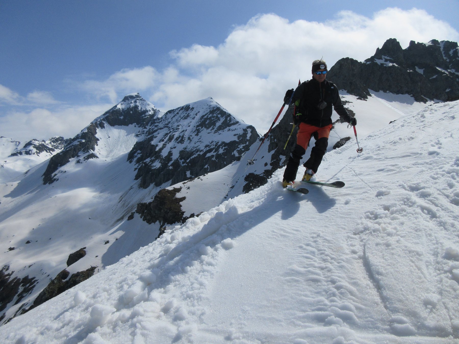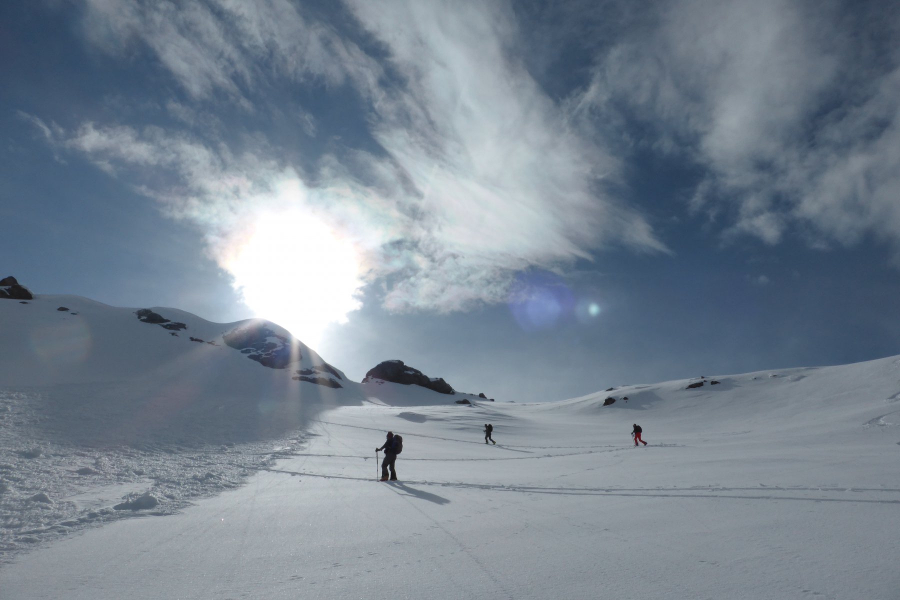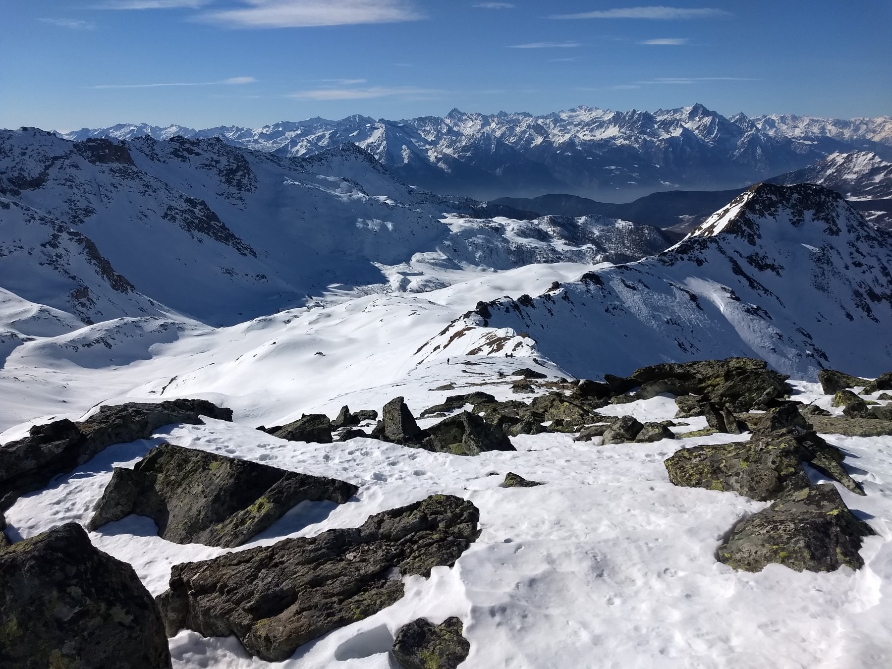 1. Salire al col di Croux ( o des Fontaines), quindi per cresta (alcuni tratti affilati) fino in punta sci ai piedi.
