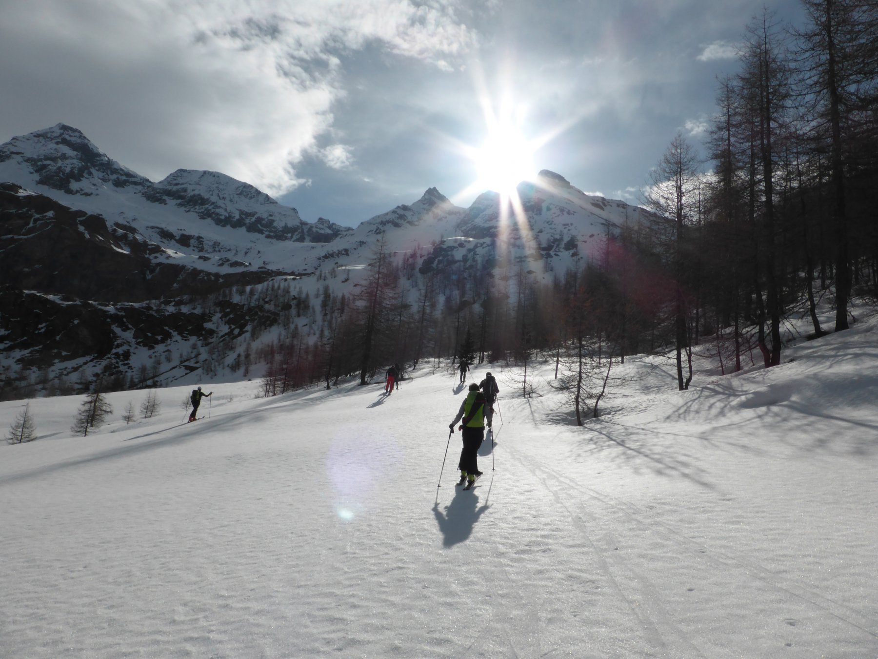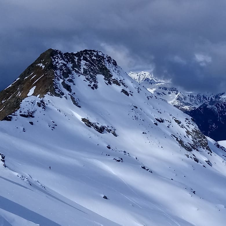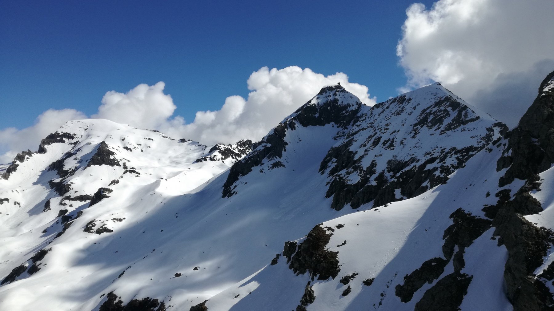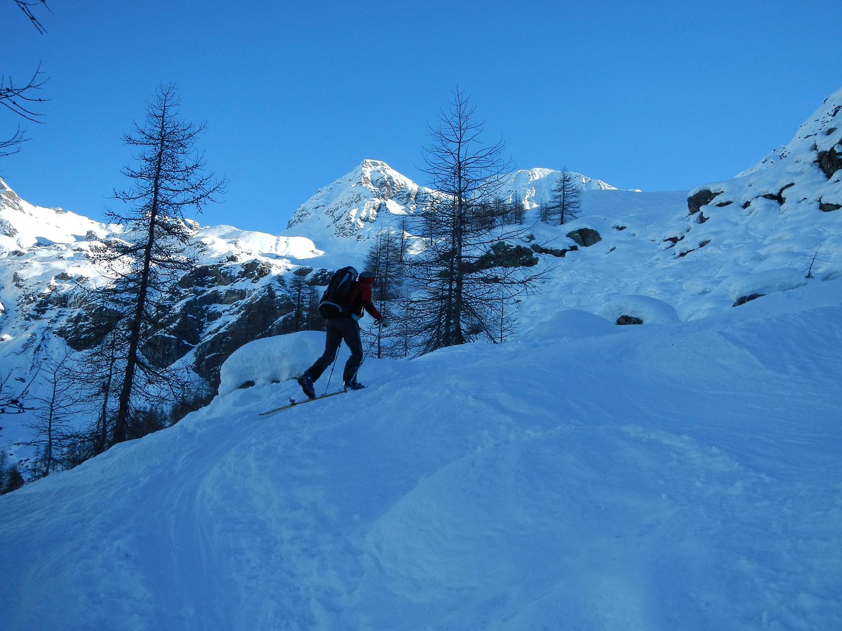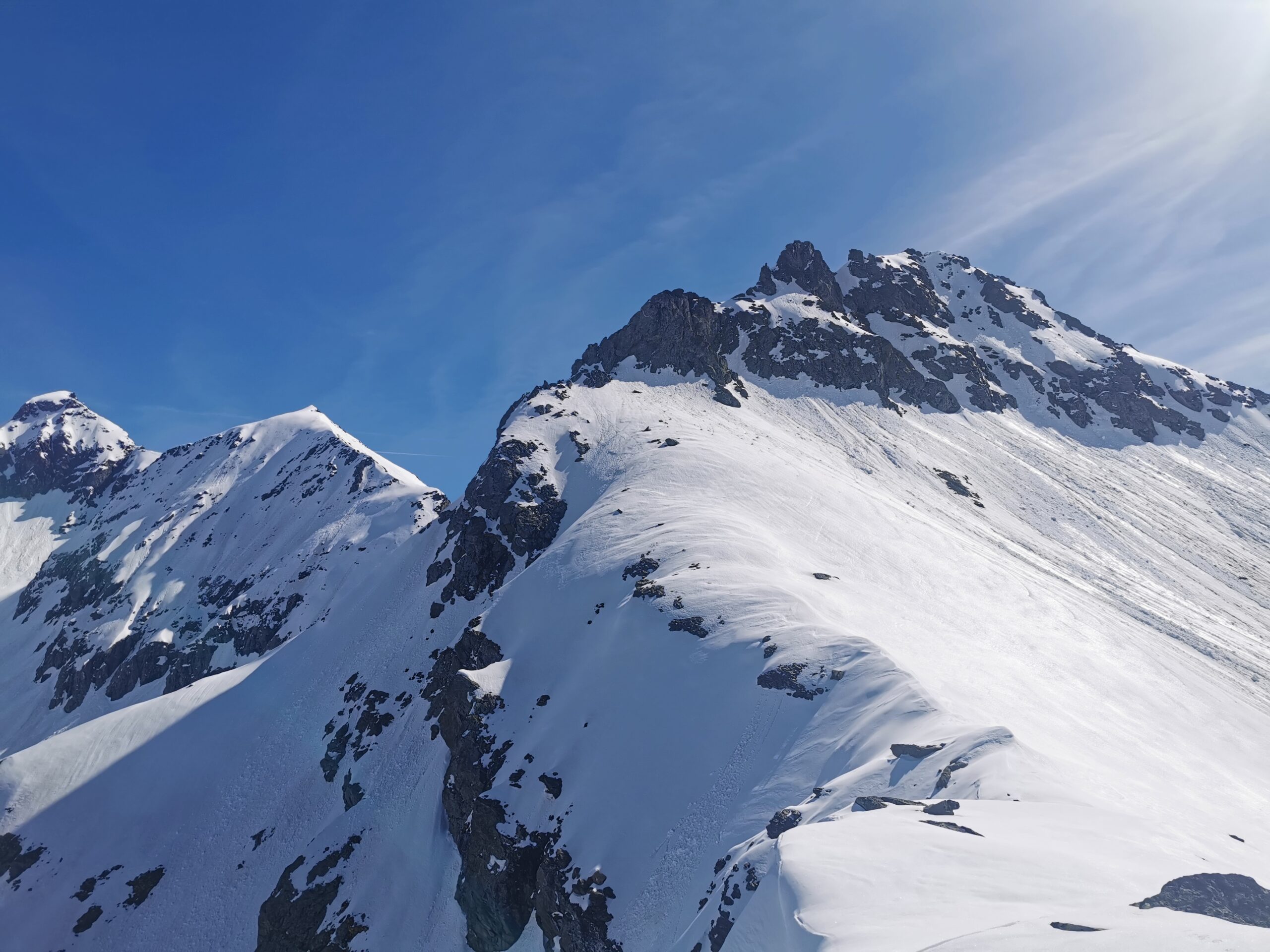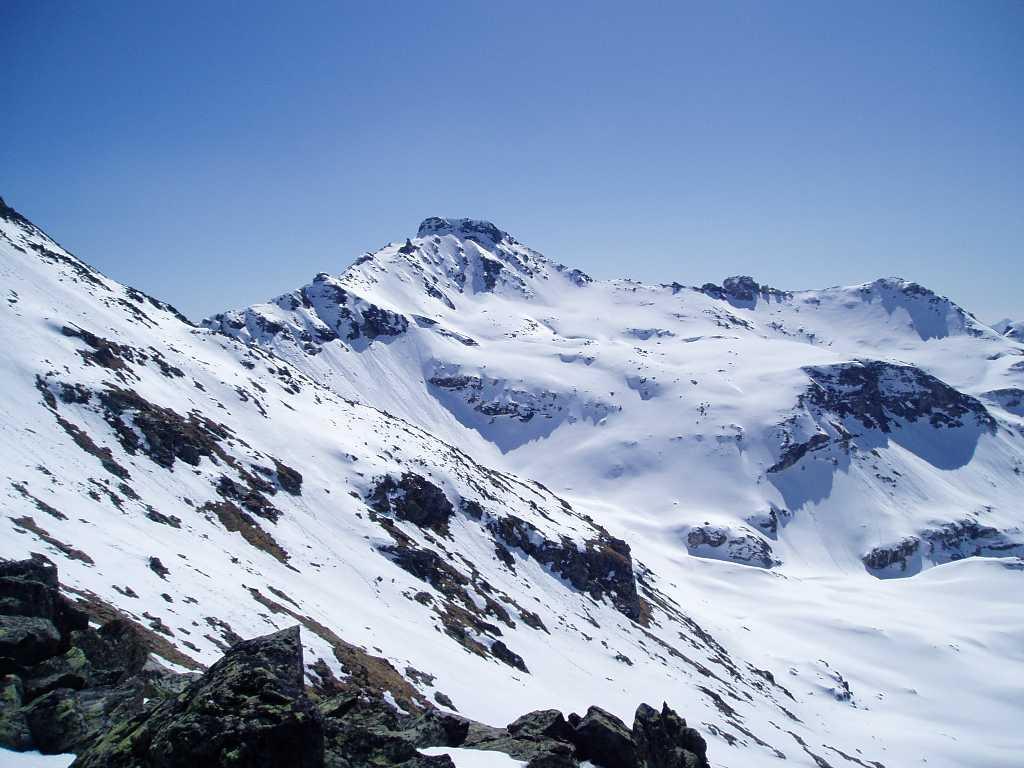 1. Salire al col di Croux ( o des Fontaines), quindi per cresta (alcuni tratti affilati) fino in punta sci ai piedi.