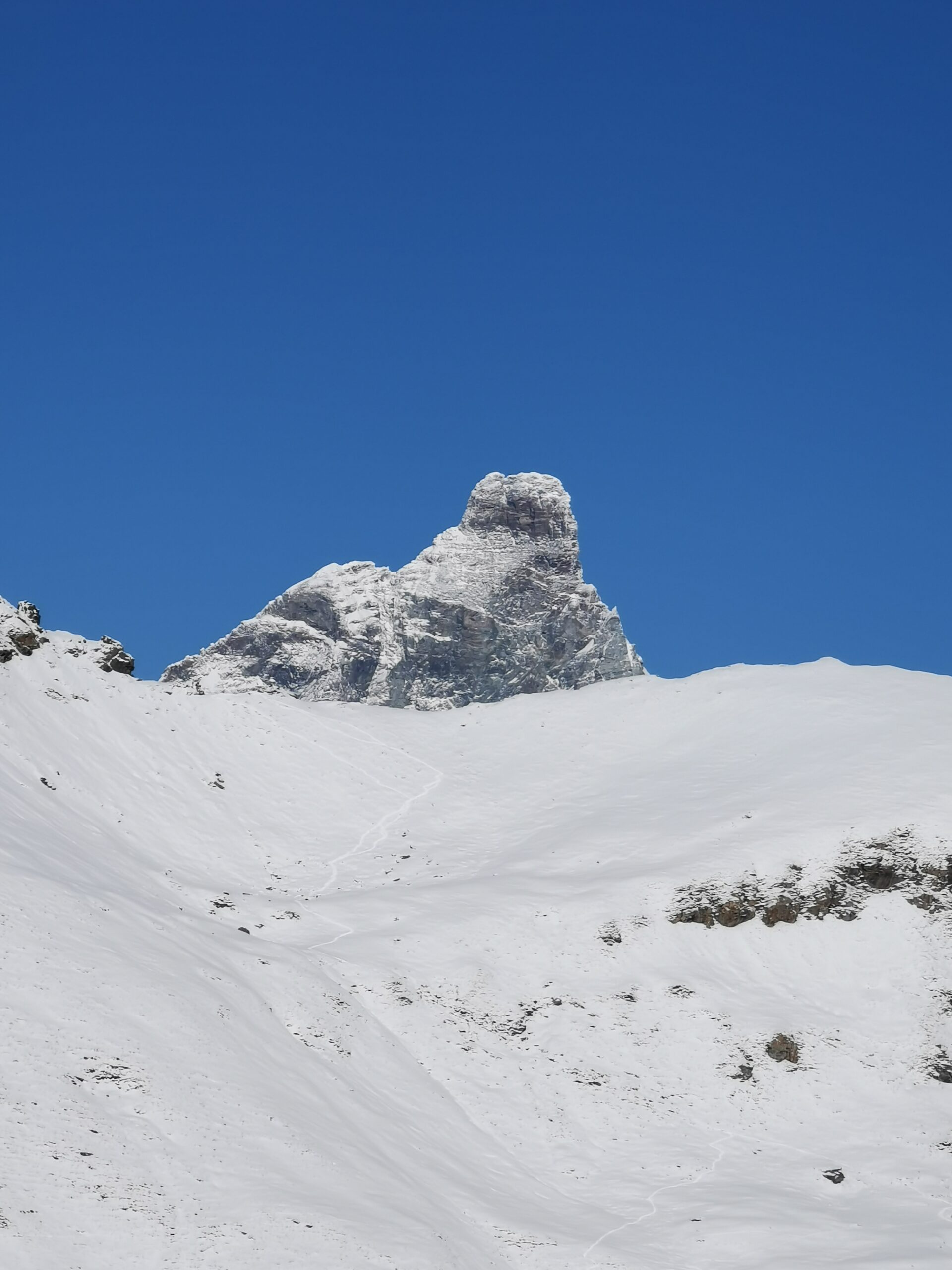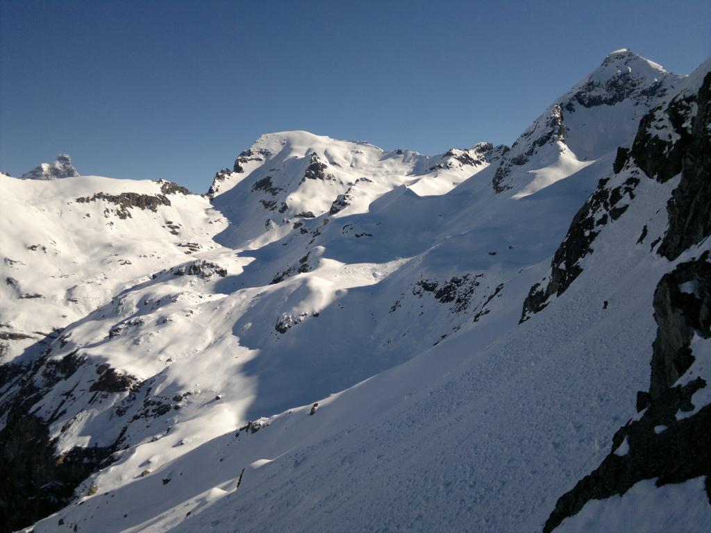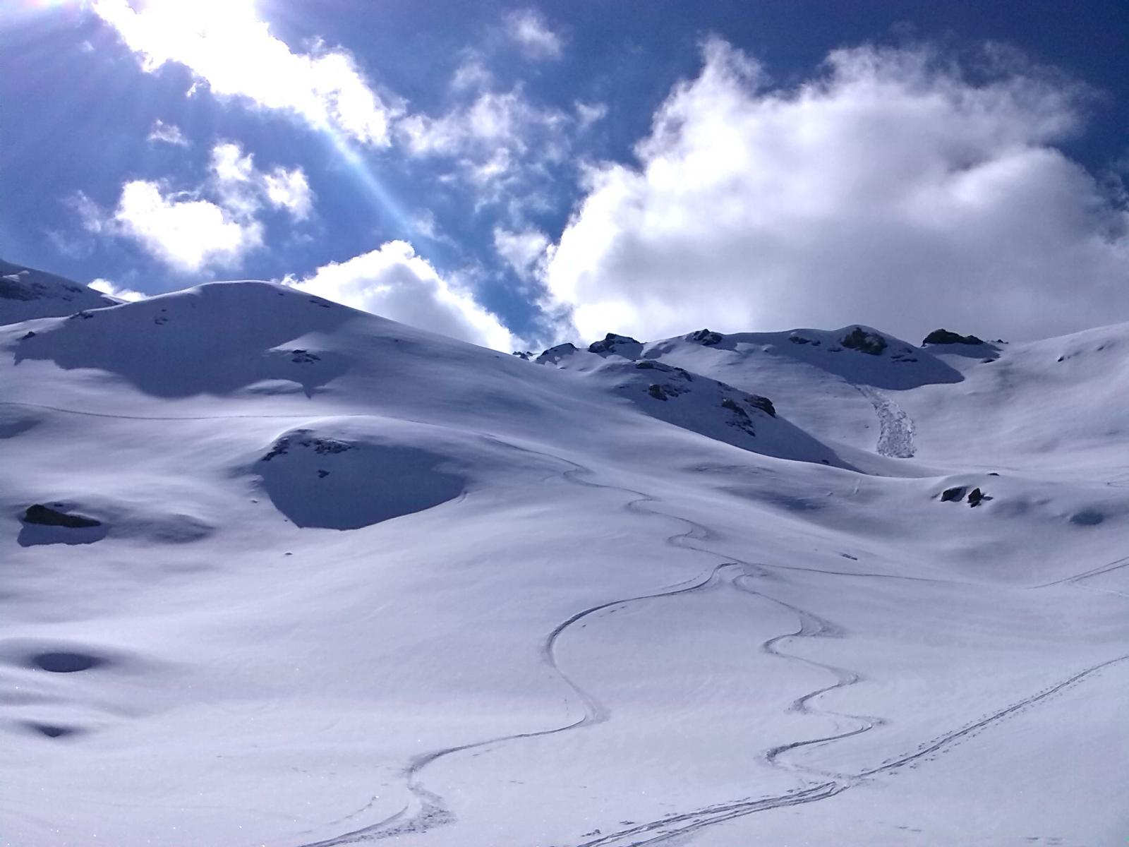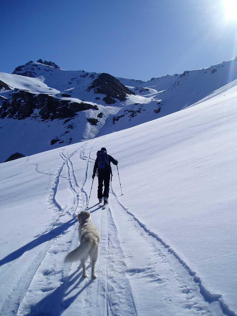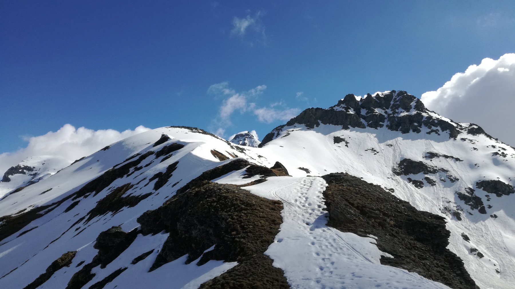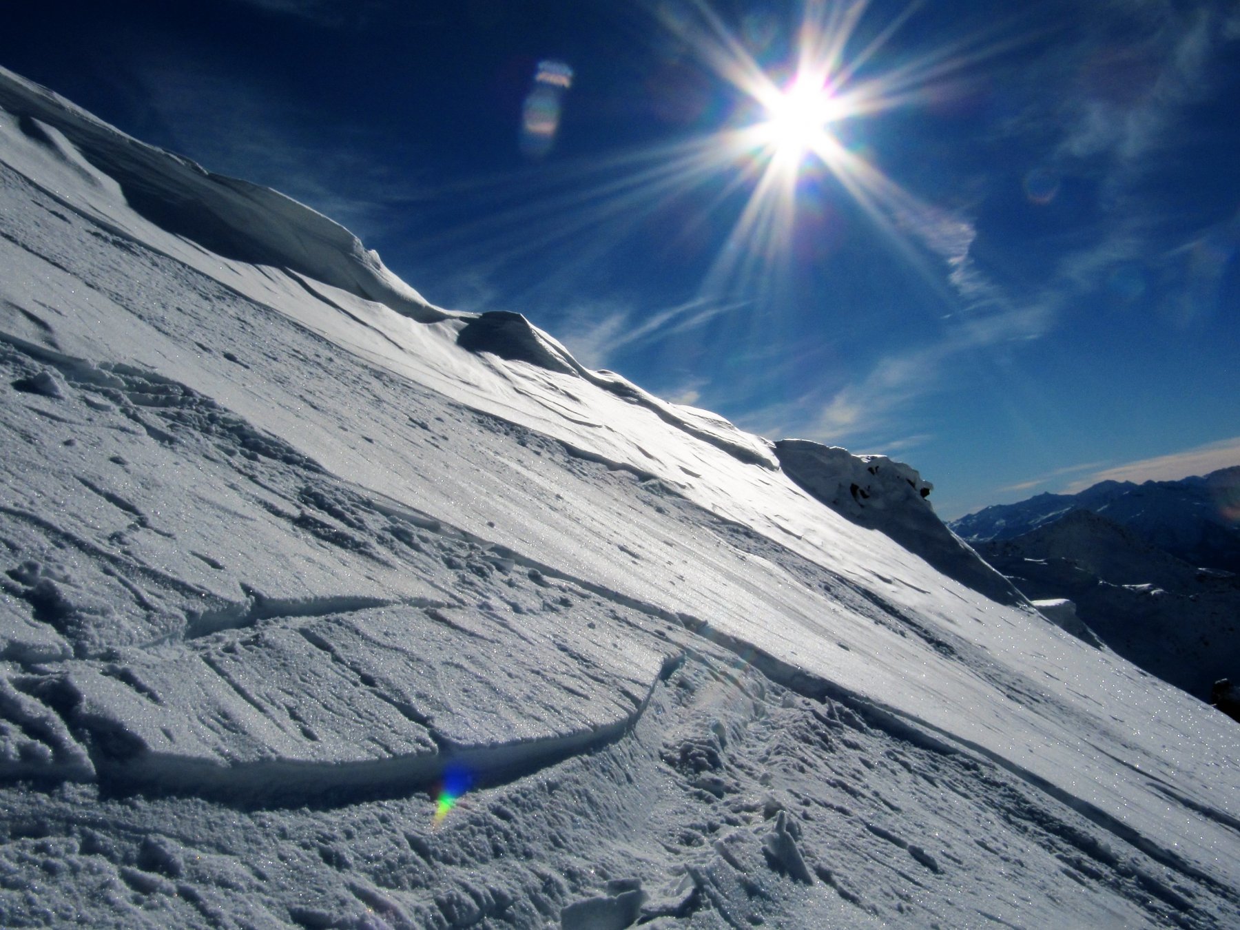1. Salire al col di Croux ( o des Fontaines), quindi per cresta (alcuni tratti affilati) fino in punta sci ai piedi.