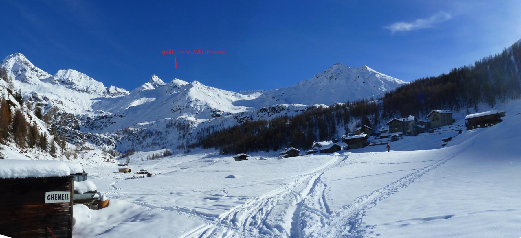 Da Cheneil salire alla conca sotto l’alpe Champsec. Da sopra l’alpe Champsec sono possibili due itinerari: