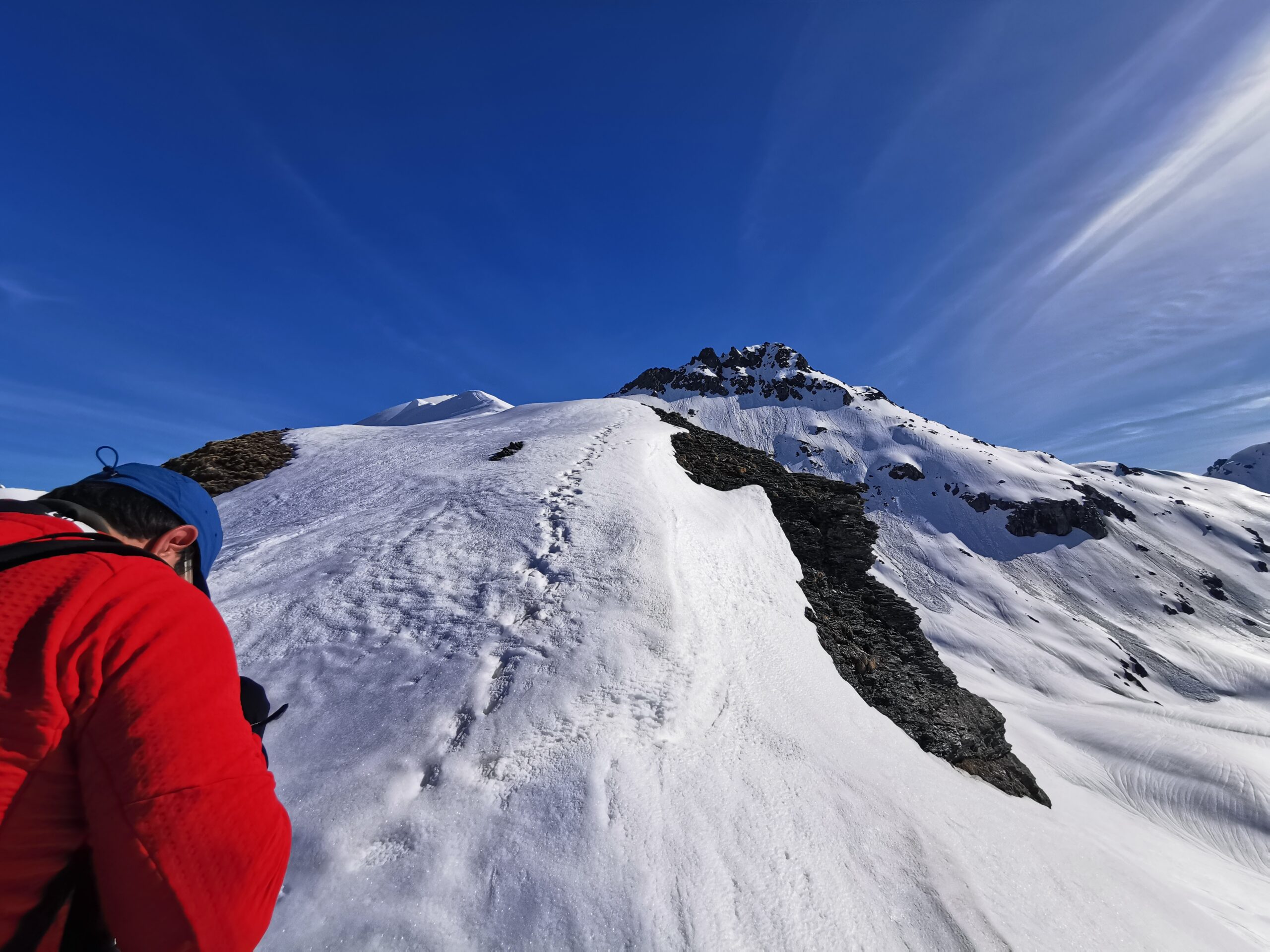 Muro iniziale con neve moltoo! dura poi firn, nel bosco ha mollato. Federico è sceso per la max pendenza, io per cresta fino al colle