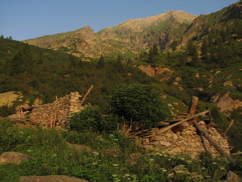 A sinistra delle baite diroccate sorge la casa di caccia della famiglia Clerico.