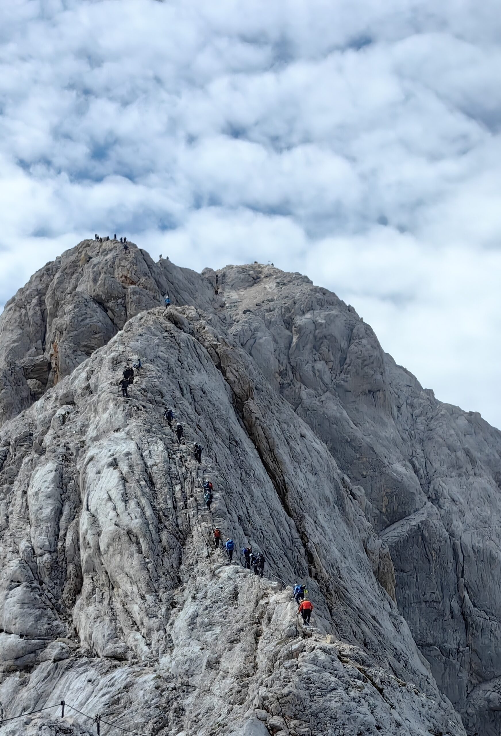 Da qui ci si porta sulla “normale” al Triglav che sale dal Triglavski Dom che, attraverso la cresta est, aerea ma ben attrezzata con pioli metallici e cordini, porta in cima.