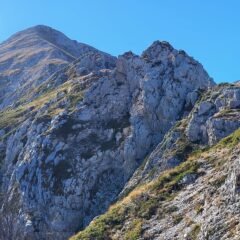 In realtà è molto semplice e solo nel canalino può esserci qualche difficoltà (detriti mobili, rocce rotte e necessità di poggiare le mani per ottenere equilibrio, quindi I°). Per il resto nessun problema, ma ambiente molto bello ed itinerario sicuramente utilissimo per percorrere la più impegnativa Cresta N della Punta Trento, girando a dx alla Sella dei Due Colli.