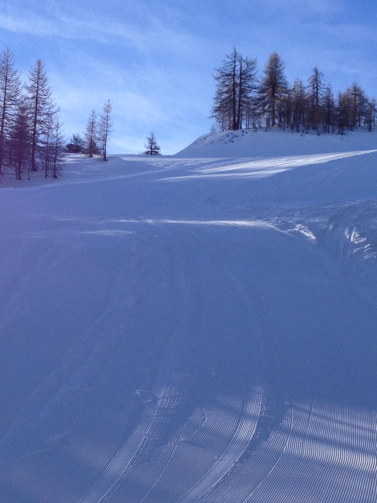 Salito lungo la pista “29” di Sauze parzialmente battuta. Discesa nel bosco della “29”, abbastanza tritato, con neve ottima all’inzio che man mano diventava un po` pesante ma comunque sciabilissima, ultima parte della discesa su pista.