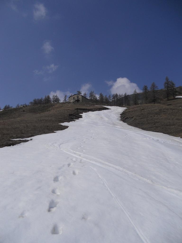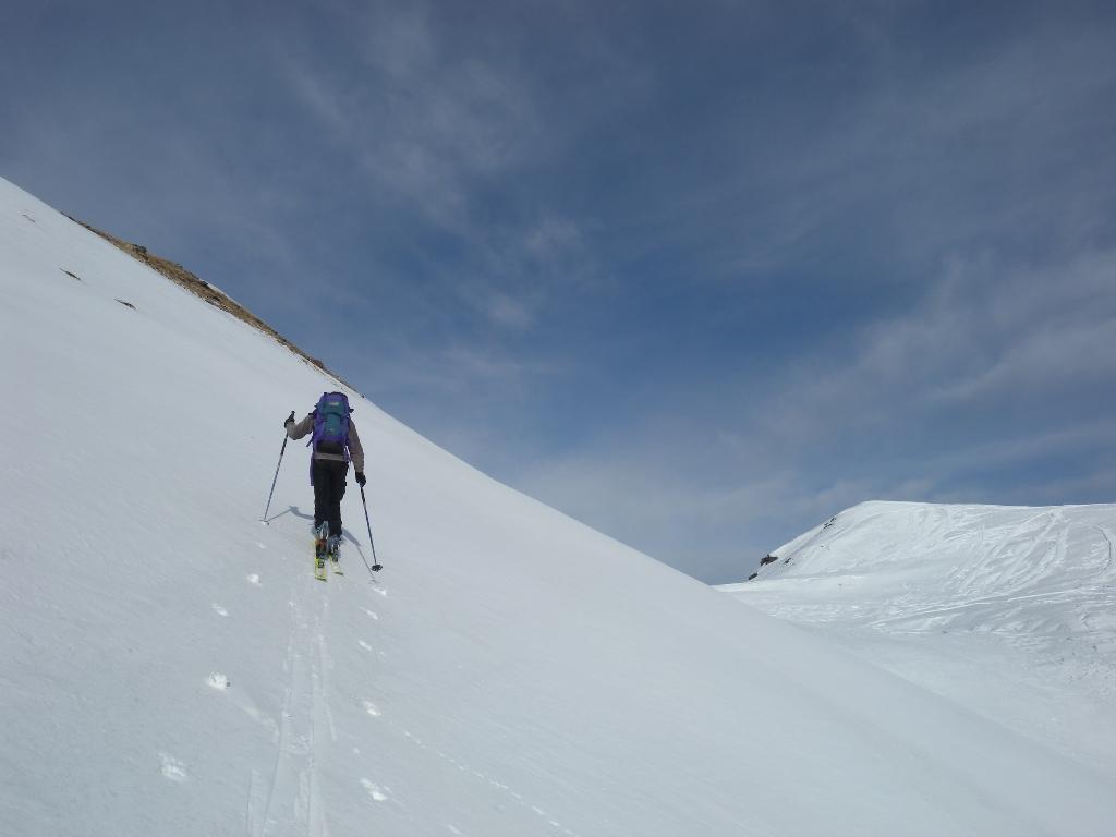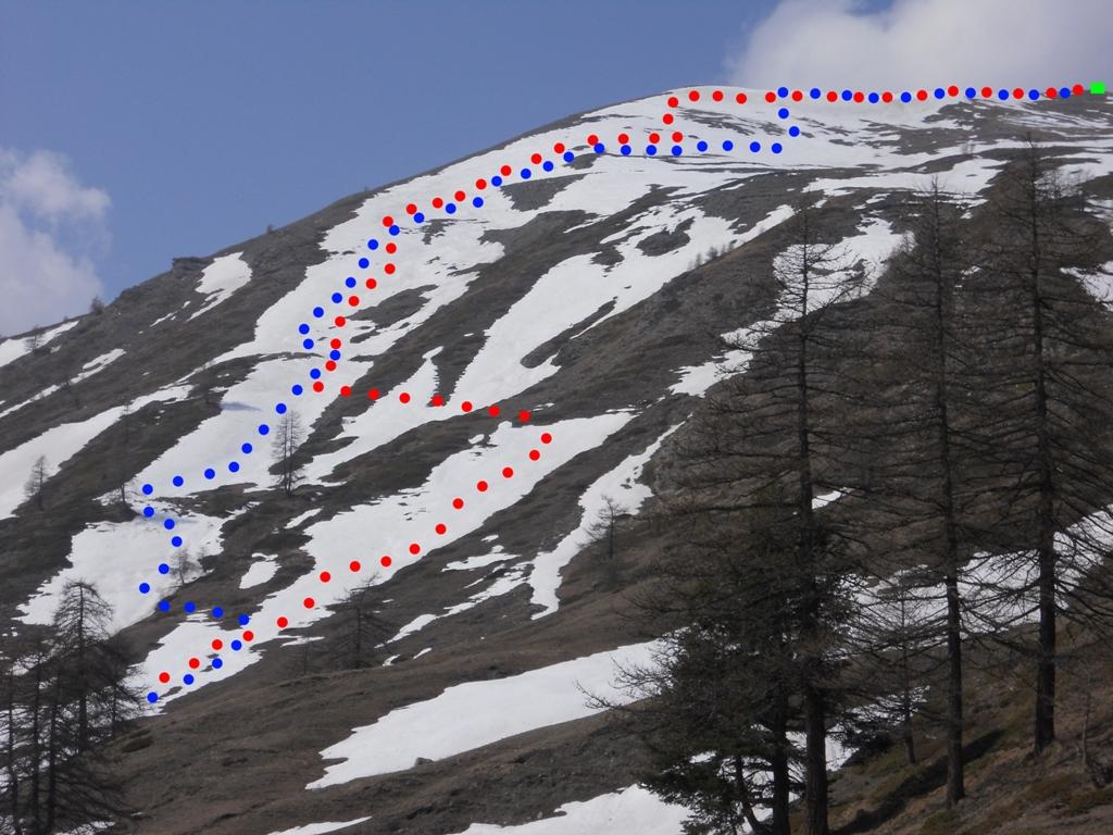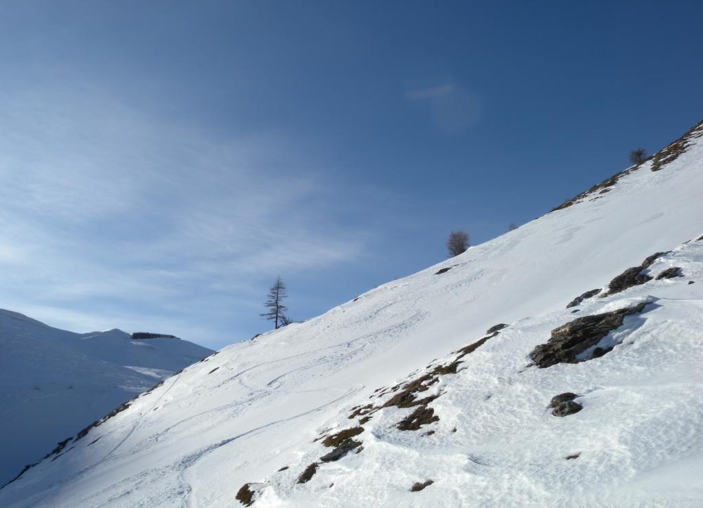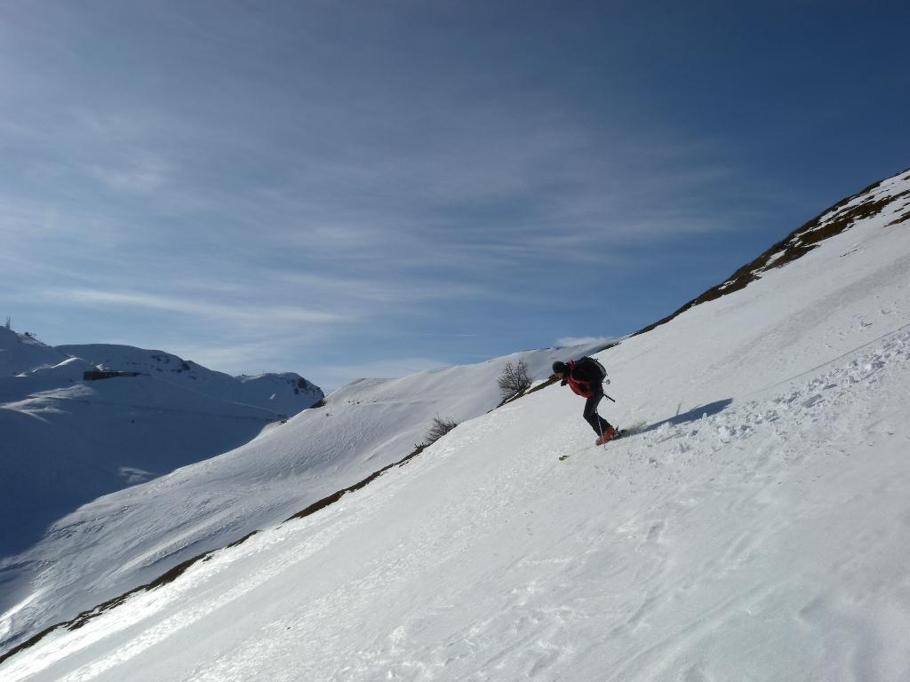 Da Villardamond (oppure dalla statale al bivio della Val Troncea passando per Villardamont), si risale il valloncello del Combeiraut sino all’altezza di Alpe Bruns intorno ai 2100 m. Da quì si abbandona il solco vallivo e si sale a piacimento uno degli innumerevoli e ripidi valloncelli esposti a sud che portano direttamente in cima al Triplex (neve assolutamente assestata)