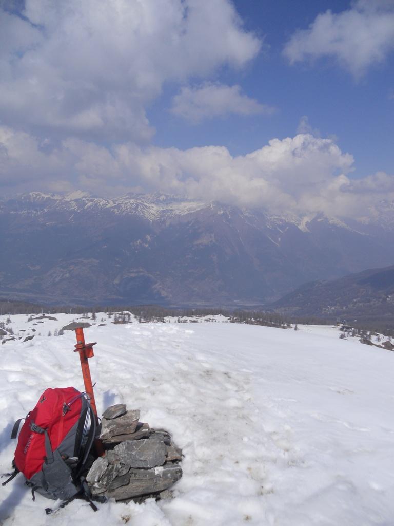 E’ tutto l’inverno che volevo andare a vedere com’era questa cima: peccato che abbia aspettato troppo. Infatti ora la neve inizia da quota 2200 (a seconda del valloncello che si sceglie) e a causa delle temperature elevate non è rigelata. In sostanza si portano gli per 35/40 min fin dopo l’alpe bruns dove iniziano i vari canali che scendono dalla cima, di qui in su ho fatto solo un gava&buta e poi per pendii in neve marcia sono arrivato fino in cima. Dalla punta bel panorama (purtroppo rovinato un po’ dalle nuvole) e arietta frizzante. In discesa molto meglio di quel che mi aspettassi: 5-10cm di neve marcia su fondo duro che mi ha permesso una bella (anche se breve) sciata rilassata e divertente nei bei valloncelli a pendenza costante (max 35°). Un’ultima lingua di neve sotto l’alpe bruns permette di “tagliare” due tornanti. La nord del Pitre è innevata bene e ci sono solo poco tracce verso NE, volendo limitare al minimo il portage si può prendere un sentierino con indicazione “chezal” che attraversa il rio combeiraut a 10 min da villardamont e che porta sulla NE dove la neve è già continua a 1800 m (una volta attrversato il rio però il sentiero devia e bisogna quindi salire senza percorso obbligato verso il fondo del vallone e la cima).