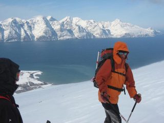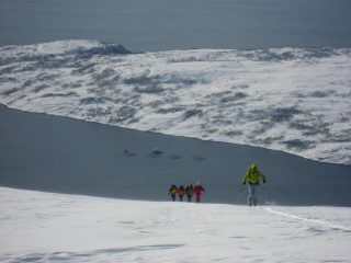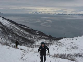 Settimana in Norvegia sulle Alpi di Lyngen nei pressi di Tromso dal 04/04/09 al 11/04/09. Gruppo di 11 “insaziabili”scialpinisti guidati dal mitico ed instancabile Alberto Re alla sua ennesima spedizione su queste incredibili montagne.Esperienza indescrivibile per la bellezza dei posti, la neve trovata, i panorami che porteremo per sempre con noi, l’accoglienza e l’ospitalita’offerta da Bernard Audrezet,sintetico ma espertissimo comandante dell’Isbjorn II, il battello che ci ha portato per sei giorni da un fiordo all’altro, alla partenza e arrivo delle nostre sei incredibili gite (si, proprio sei gite su sei giorni, cosa abbastanza insolita da queste parti….)