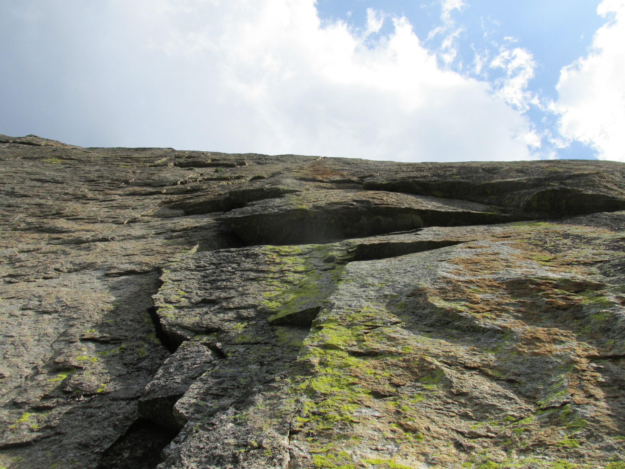 6° tiro) Superare l’evidente larga fessura in Dulfer (6A/6A+), al suo termine uscire a sx alla sosta di calata di “Incastro a Mario” (…o se si preferisce di “Opzione Zero”).