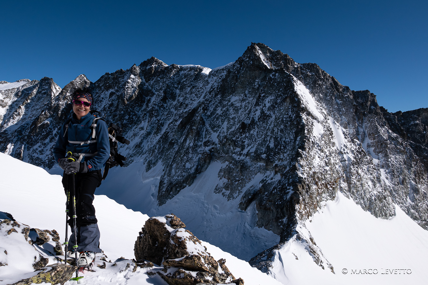 Sciata migliore del previsto con condizioni di innevamento al limite (incredibile a queste quote a febbraio) ma gita comunque molto apprezzabile a patto di considerarne l’essenza scialpinistica, che non si limiti a valutare unicamente il fattore tecnico-sciistico, ma tenga conto di tutti gli aspetti connessi ad una salita completa. Con Marcella