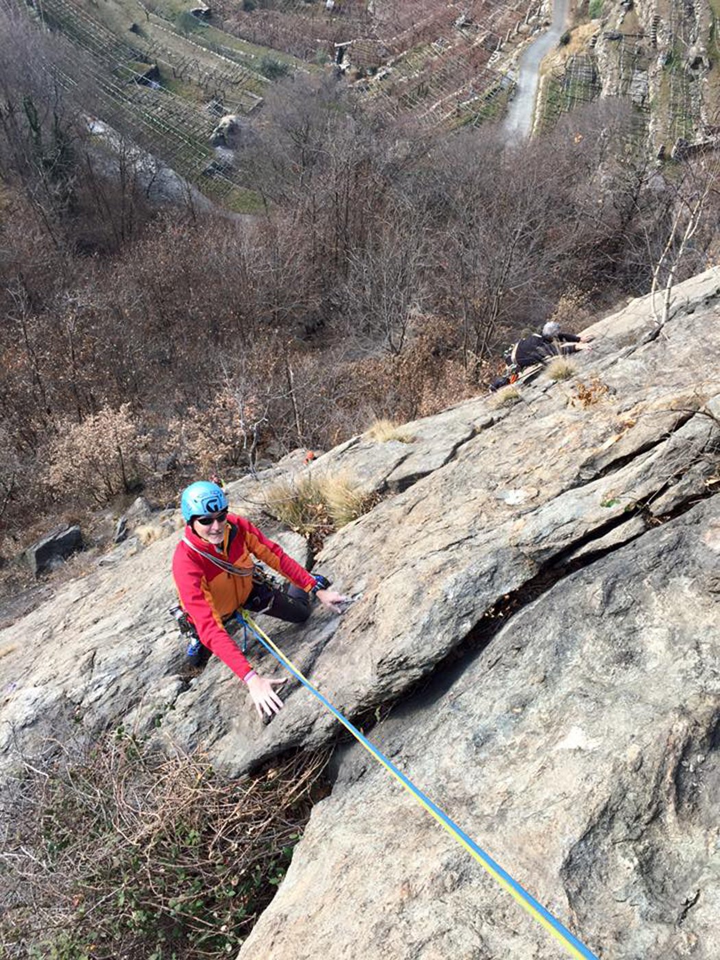 Via molto bella per la qualità della roccia e per le difficoltà contenute fatta eccezione per l’ultimo tiro che ho trovato veramente ostico.Il 5b per me e per molti altri è un pò stretto, sicuramente dovessi ritornare forse lo farei decisamente meglio sapendo cosa mi aspetta, comunque ho “munto” tutto quello ch’era possibile mungere!! Discesi con una sola doppia da 60 metri