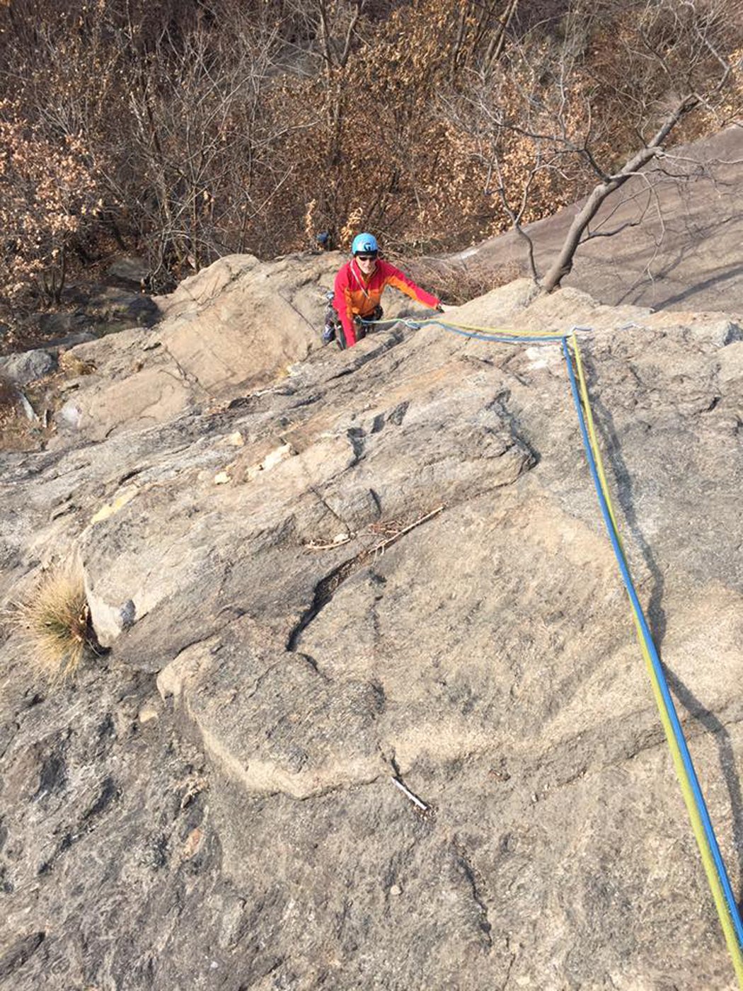 Poichè tutte le vie della “Truna” erano occupate abbiamo optato per questa via ben consapevoli che l’avremmo interrotta prima della temibile placca finale.Roccia bellissima!Abbiamo così salito i primi due bei tiri per poi scendere in doppia e salire la Turè che nel frattempo si era liberata.