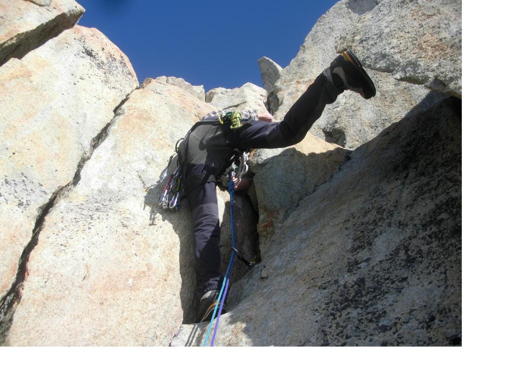 Per neve si giunge alla base del salto finale 100m ca di ottima roccia sul lato sud est della guglia dove sono concentrate le massime difficolta’ dell’itinerario qui descritto (un passo di IV) 1ora.