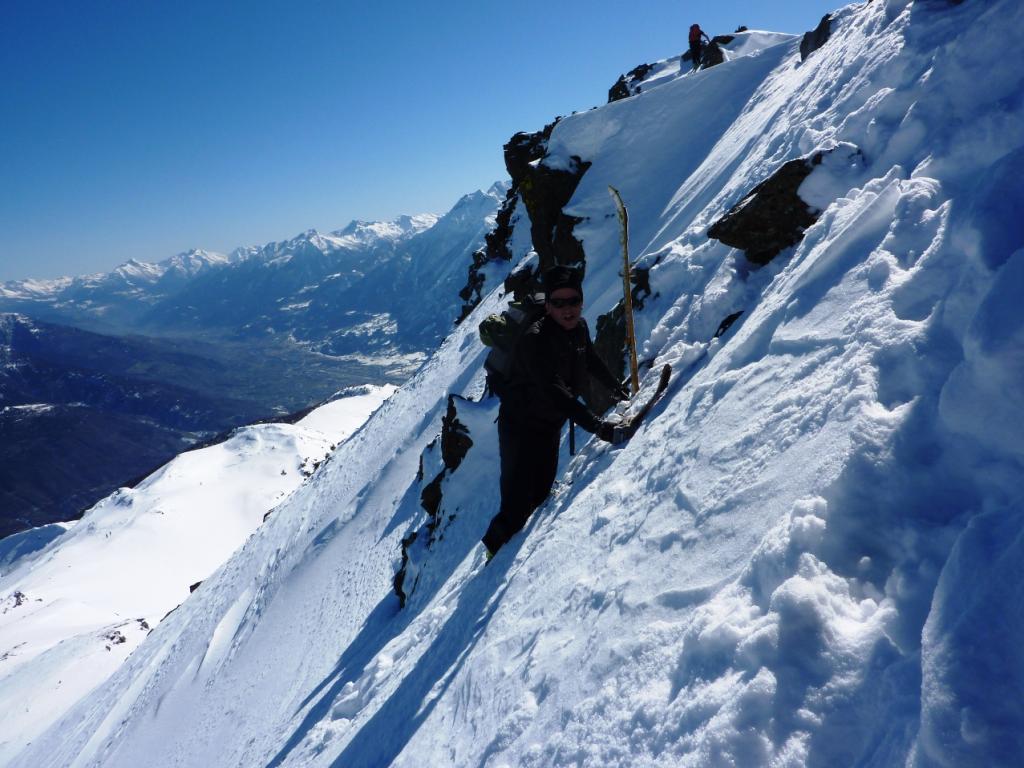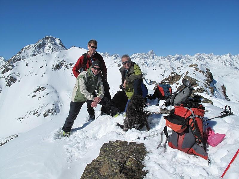 Non una nuvola. Cresta in condizioni ideali. Neve in discesa fantastica e quasi intonsa (umida ma sciabilissima anche in basso). Bellissima nel bosco. Bei panorami. Giac e Enrico strepitosi. Che si vuoloe di più??? Nessun pericolo valanghe almeno con discesa effettuata per tempo. Più tardi non so….scaldava molto in fretta.