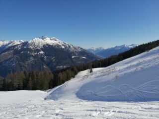 La gita è in grandi condizioni. Prima di tutto i pendii sono sicuri, la neve è assestata. Dalla cima alla Tardiva su neve ventata portante mai crostosa. Dal Col Tardiva in giù farinella compatta facile da scendere. Bosco spettacolare su neve leggera. Ultimi 150m neve più compatta ma sempre più che buona.