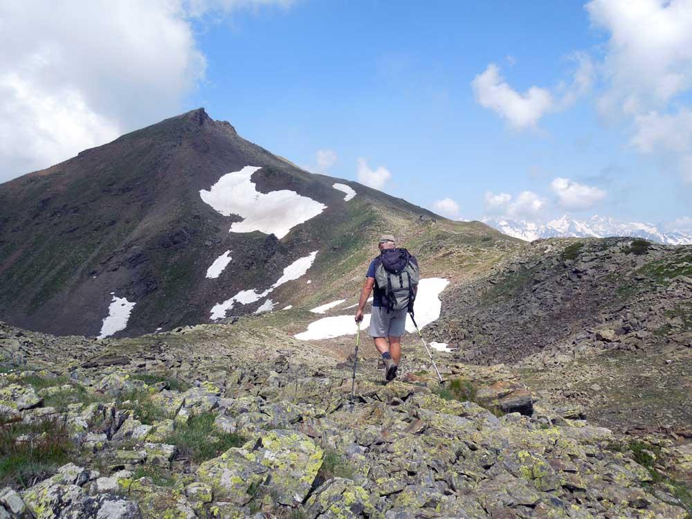 Discesa ritornando al colletto quota 2500 circa ma proseguendo ,sempre senza percorso obbligato ,nel vallone che scende verso gli alpeggi Chesére senza però raggiungerli e rimanendo sempre sulla sinistra idrografica fino ad incontrare il sentiero che risale alla punta Chaligne .
