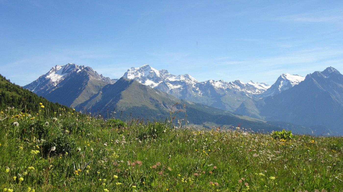 Partenza dalle baite di Thouraz sul sentiero n.7b che risale il bosco di larici,percorre la cresta completa (tratti anche ripidi) della punta Metz(mt. 2553) e prosegue per la punta Chaligne (mt.2608).