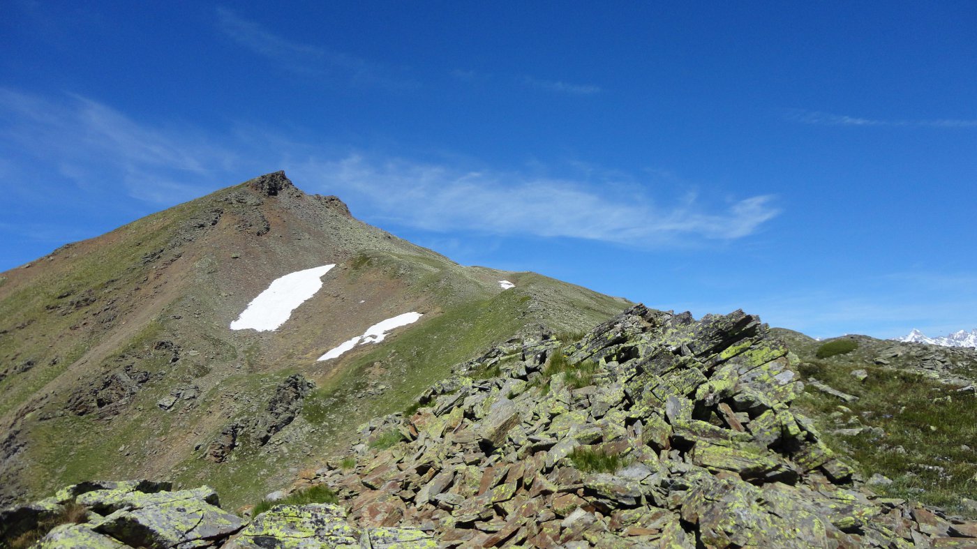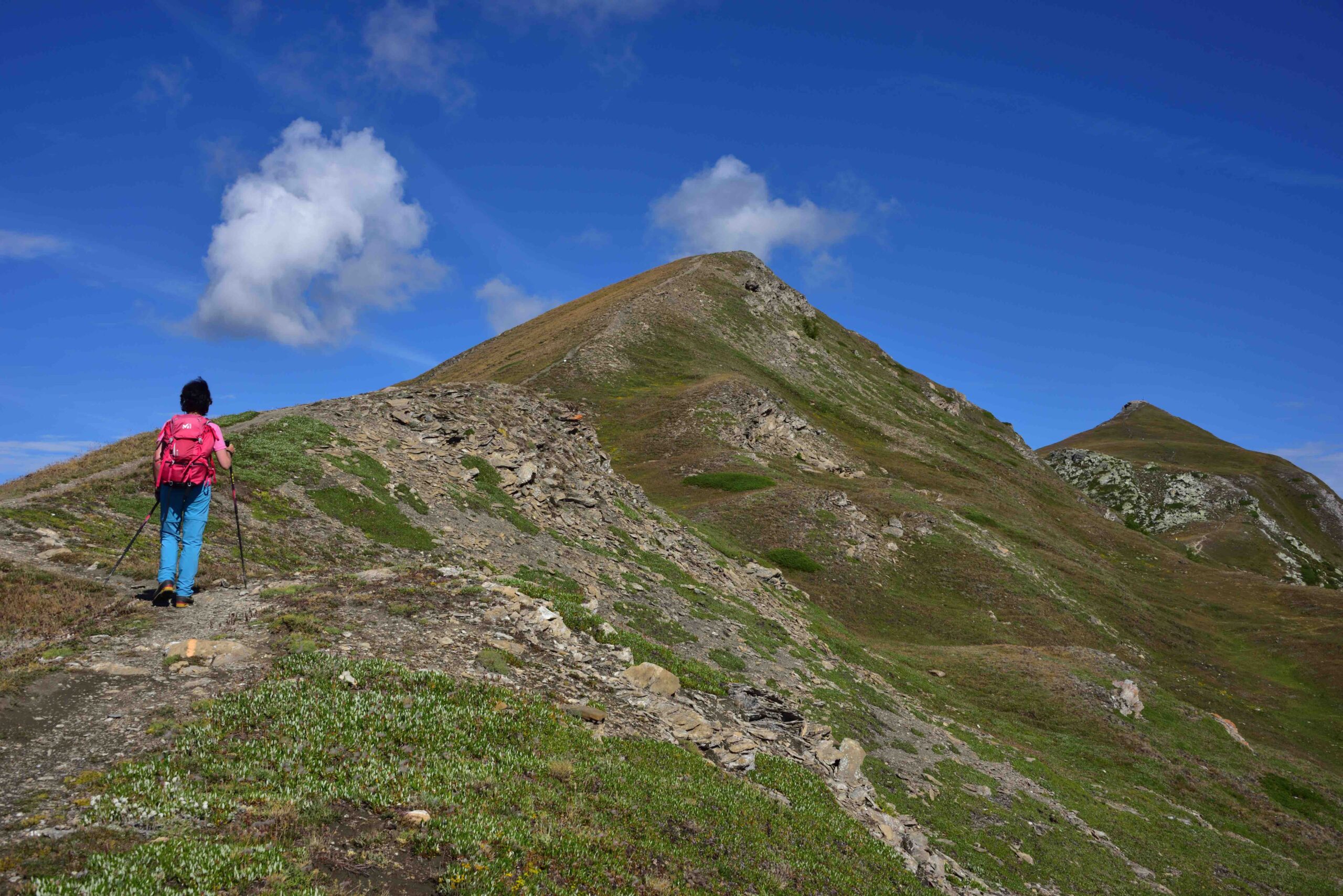 Si prosegue verso il Colle Tardiva sul sentiero n. 3 senza raggiungerlo, si lascia il sentiero e si risalgono i dossi erbosi verso il Monte de la Tsa senza percorso obbligato mirando alla destra delle due punte che costituiscono la vetta.