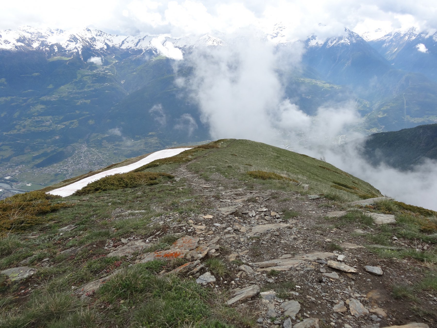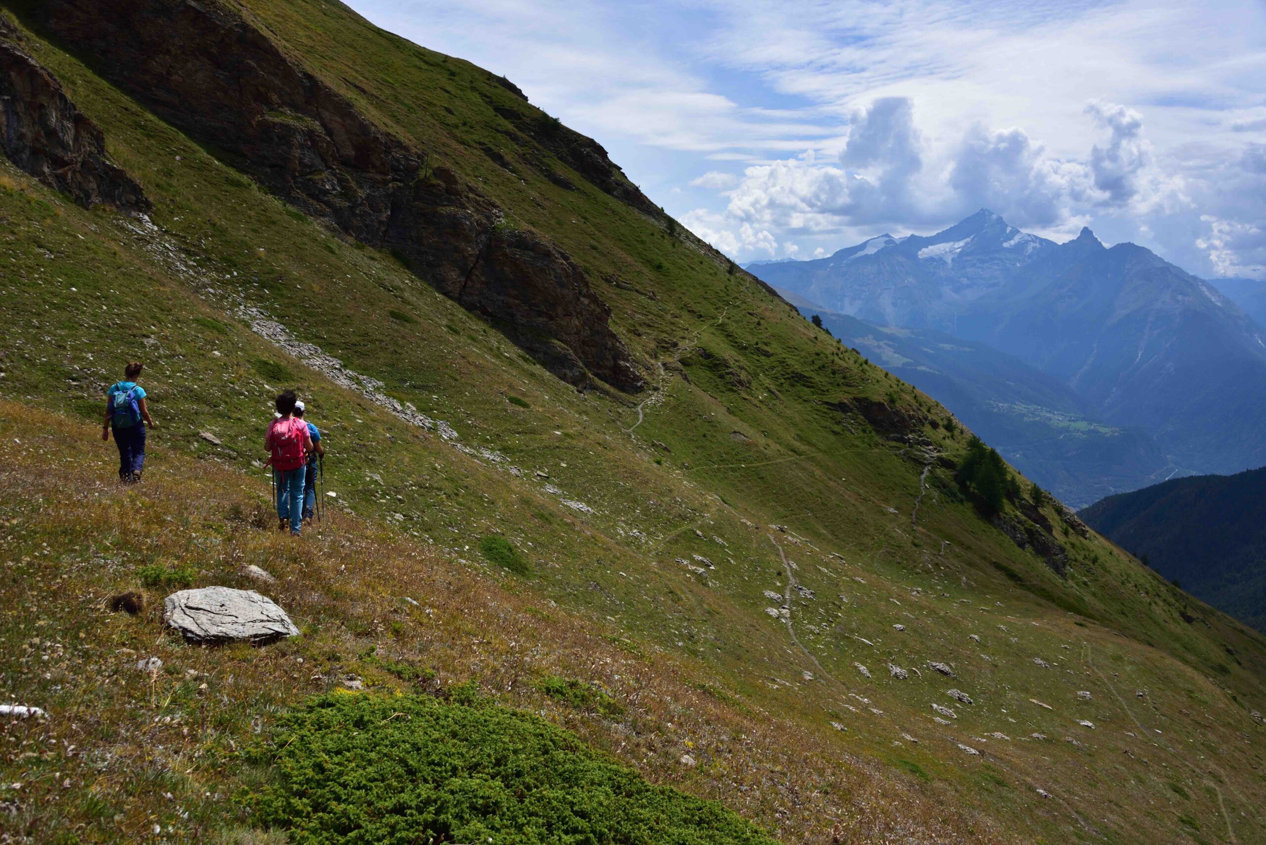 Ci si trova ad un bivio e si percorre il sentiero di destra (n.8c)che scende con un lungo traverso sul tratto finale della cresta della punta Metz chiudendo cosi l’anello ,ritrovando il sentiero n.7 b che riconduce a Thouraz.