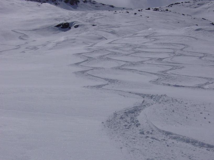 Buona sera a tutti. Fondo valle con tormenta gia’ attiva alle 8 del mattino, tranne verso Pila. Bella giornata soleggiata e calda.Neve farinosa fino alla macchina. Siamo scesi senza toccare le piste tranne gli ultimi 100 metri di dislivello.