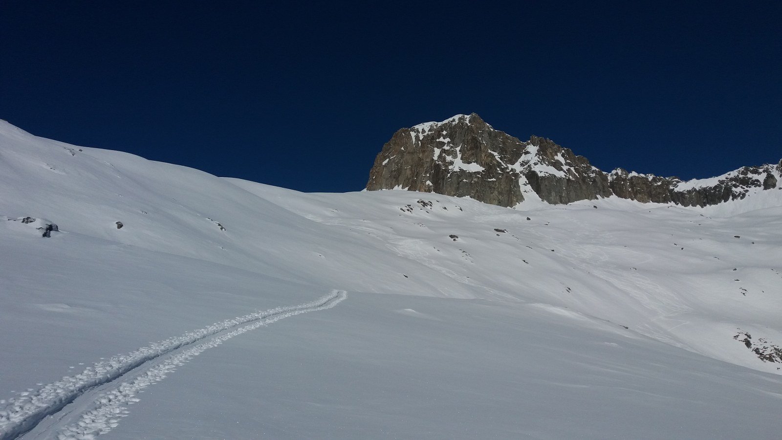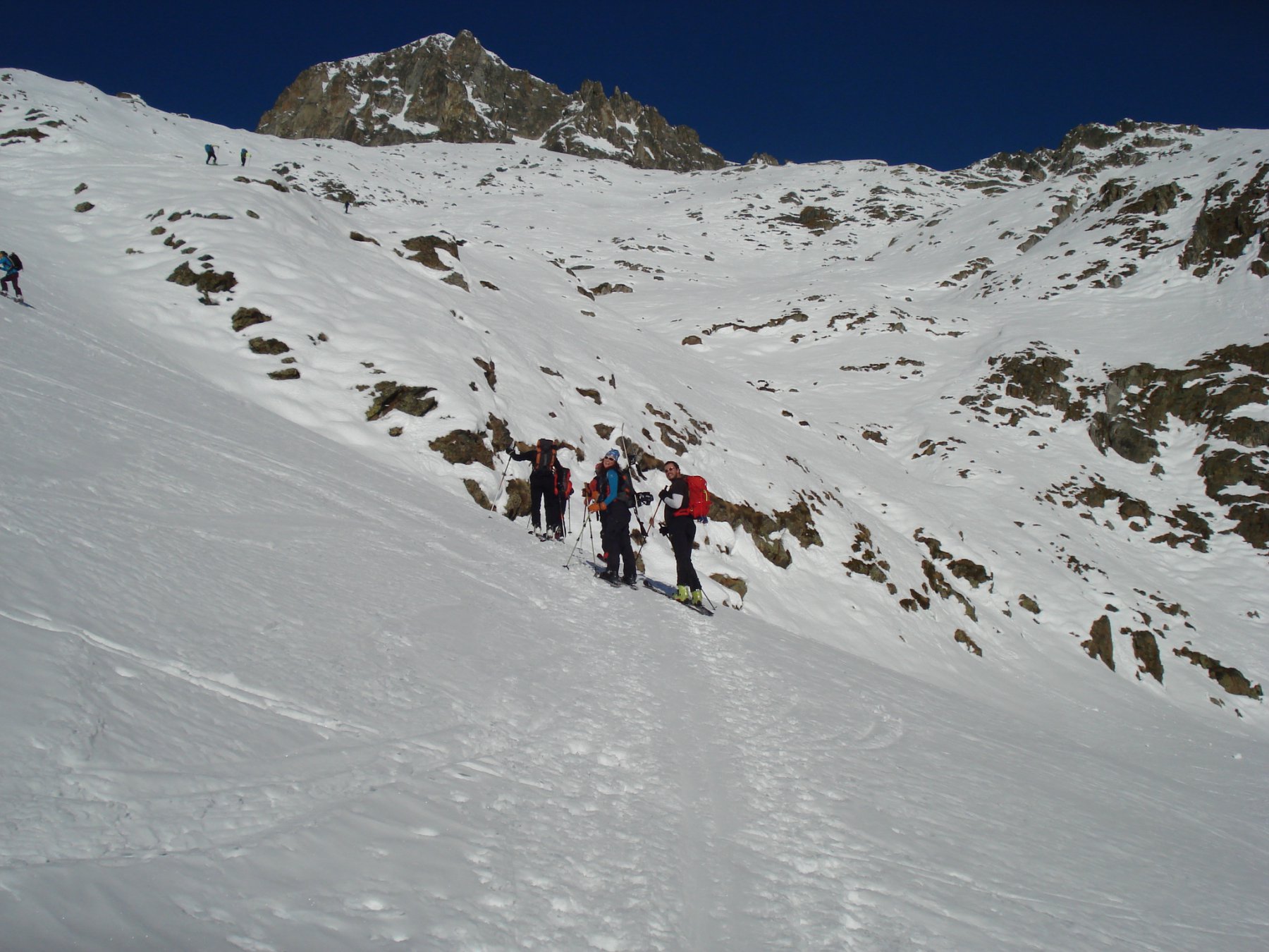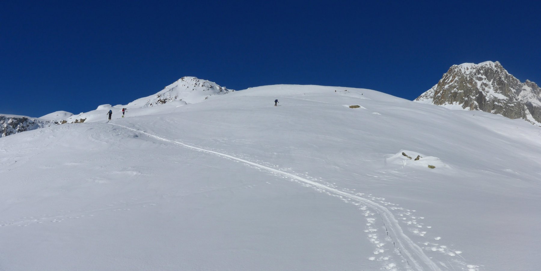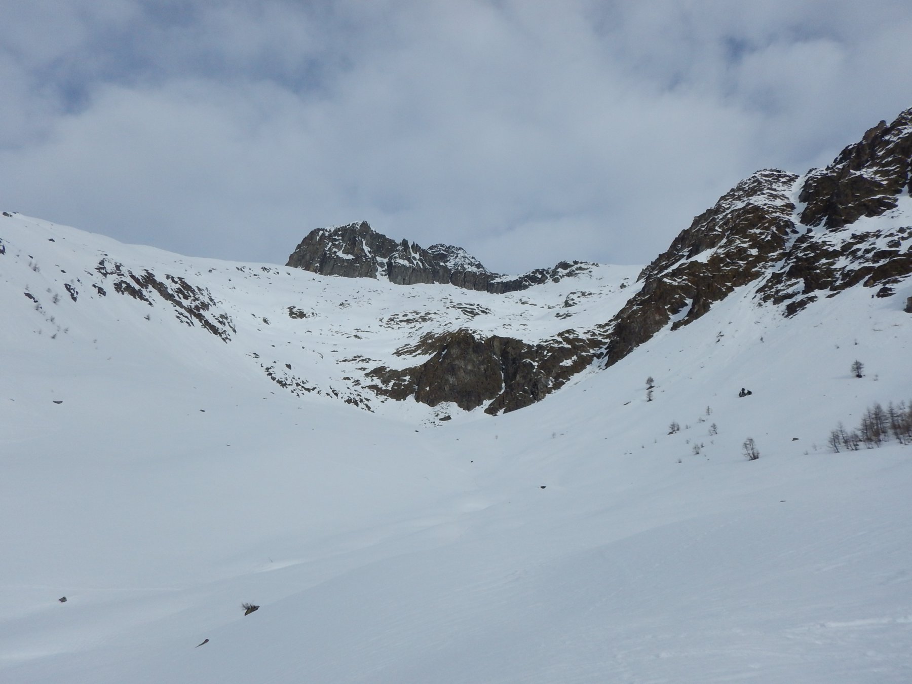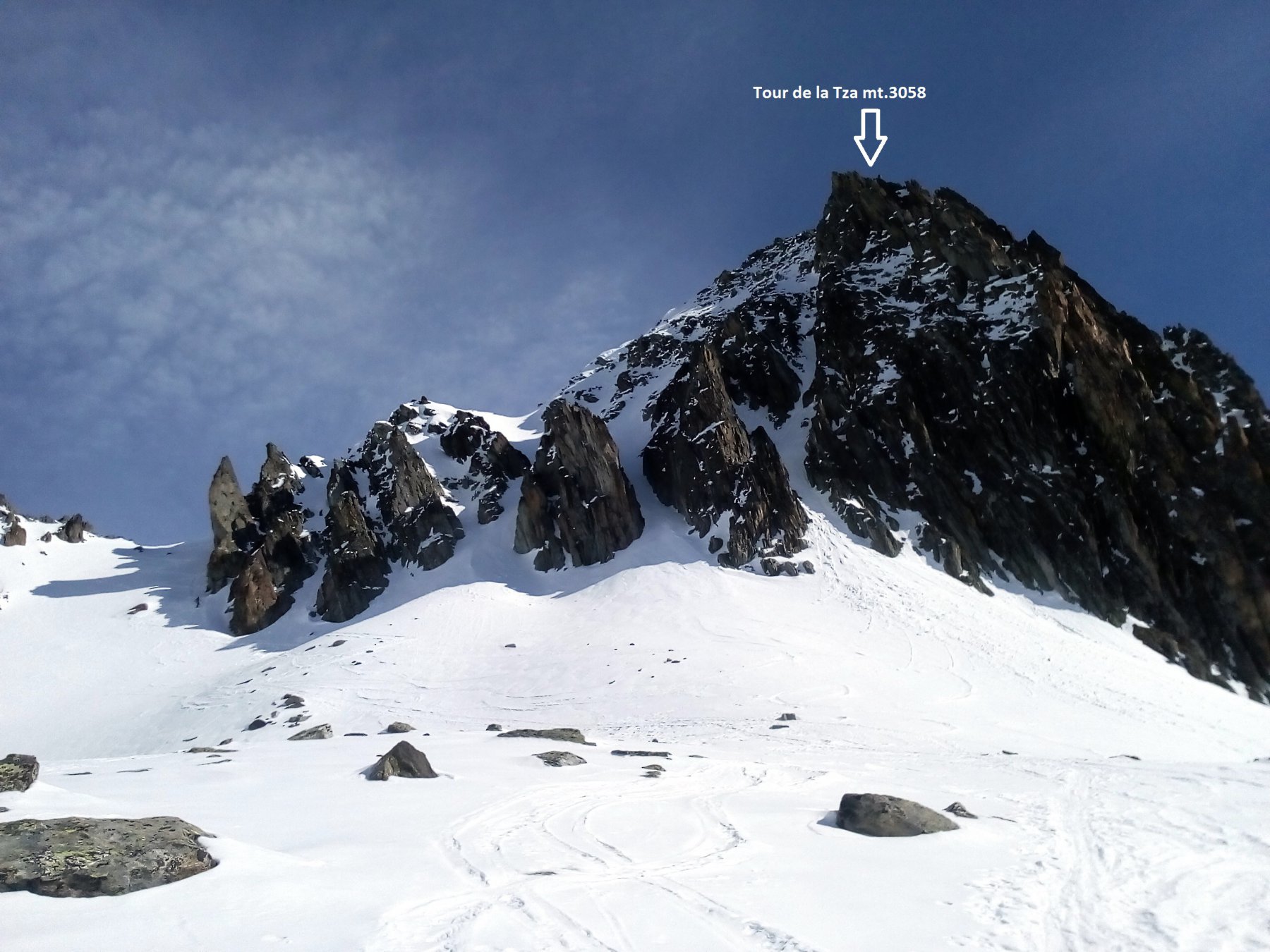 Si prosegue per dossi e pendii poco inclinati e aperti, puntando alla dorsale di sinistra che separa due valloni. Raggiunta la dorsale la si percorre oppure si risale il pendio di destra, per proseguire passando sotto le pareti sud della Tour de la Tsa.