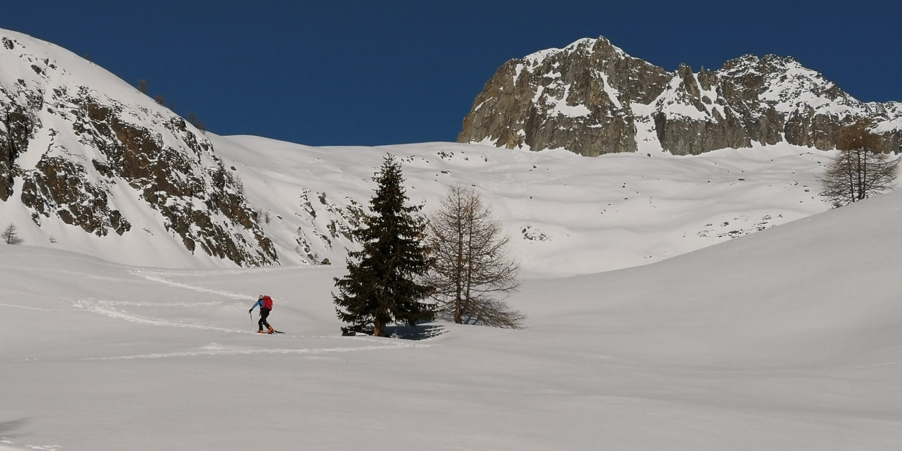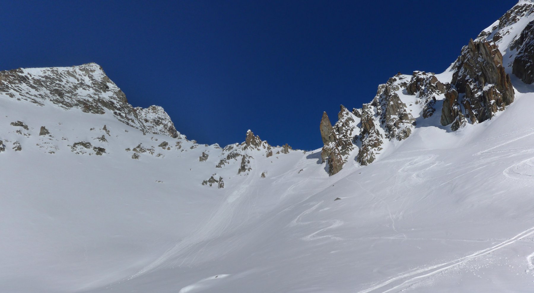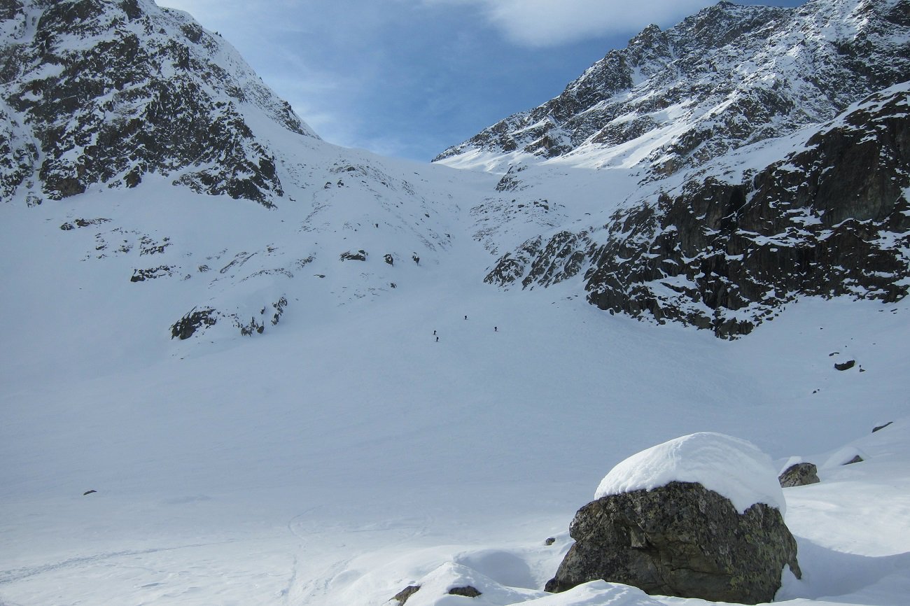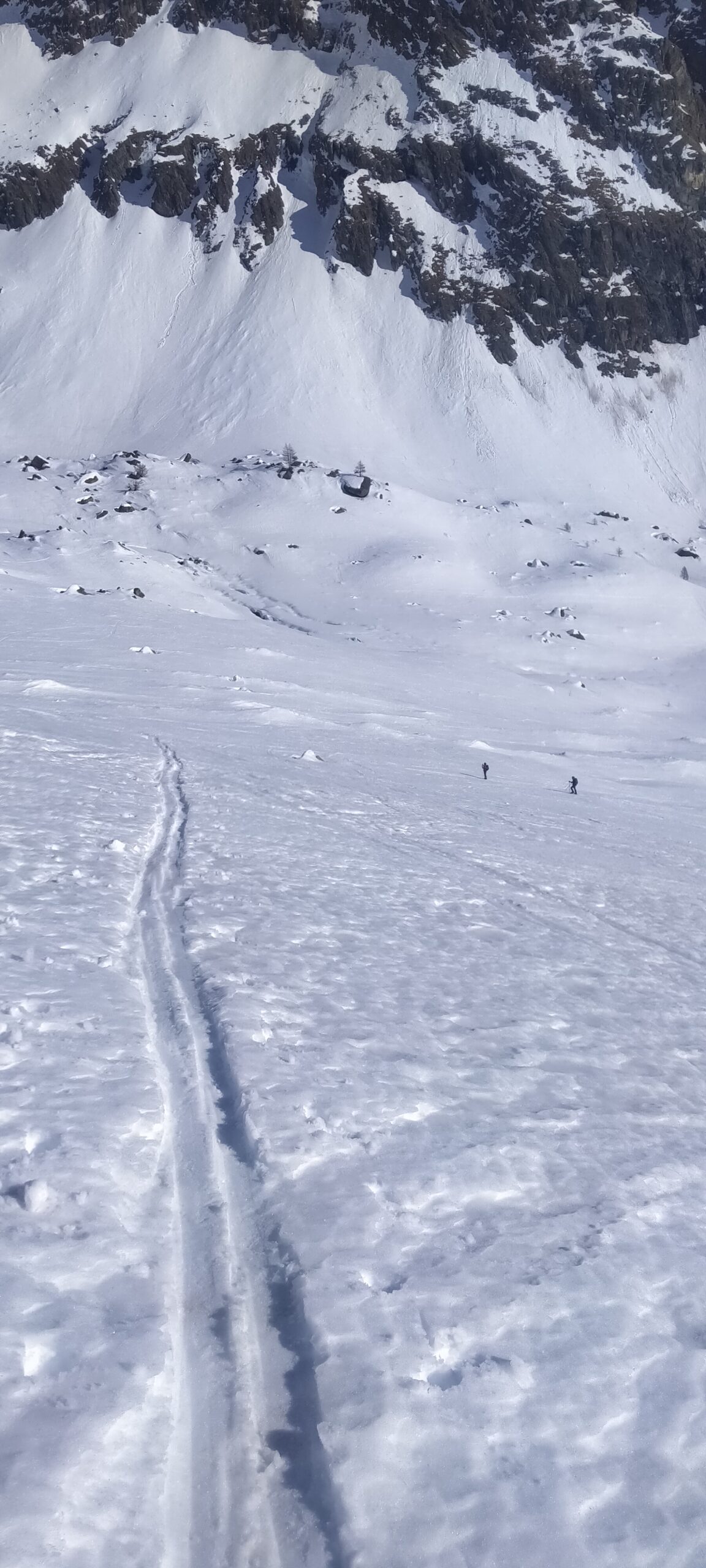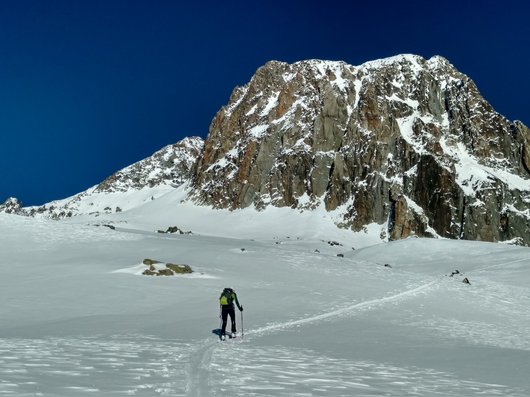 Si prosegue per dossi e pendii poco inclinati e aperti, puntando alla dorsale di sinistra che separa due valloni. Raggiunta la dorsale la si percorre oppure si risale il pendio di destra, per proseguire passando sotto le pareti sud della Tour de la Tsa.