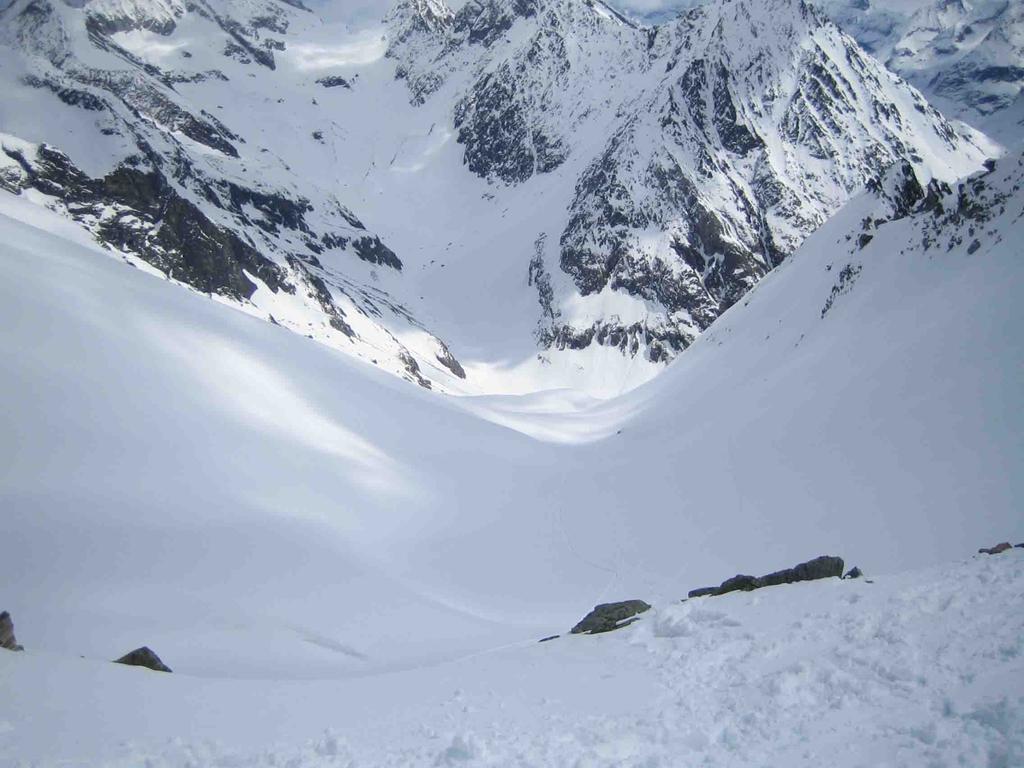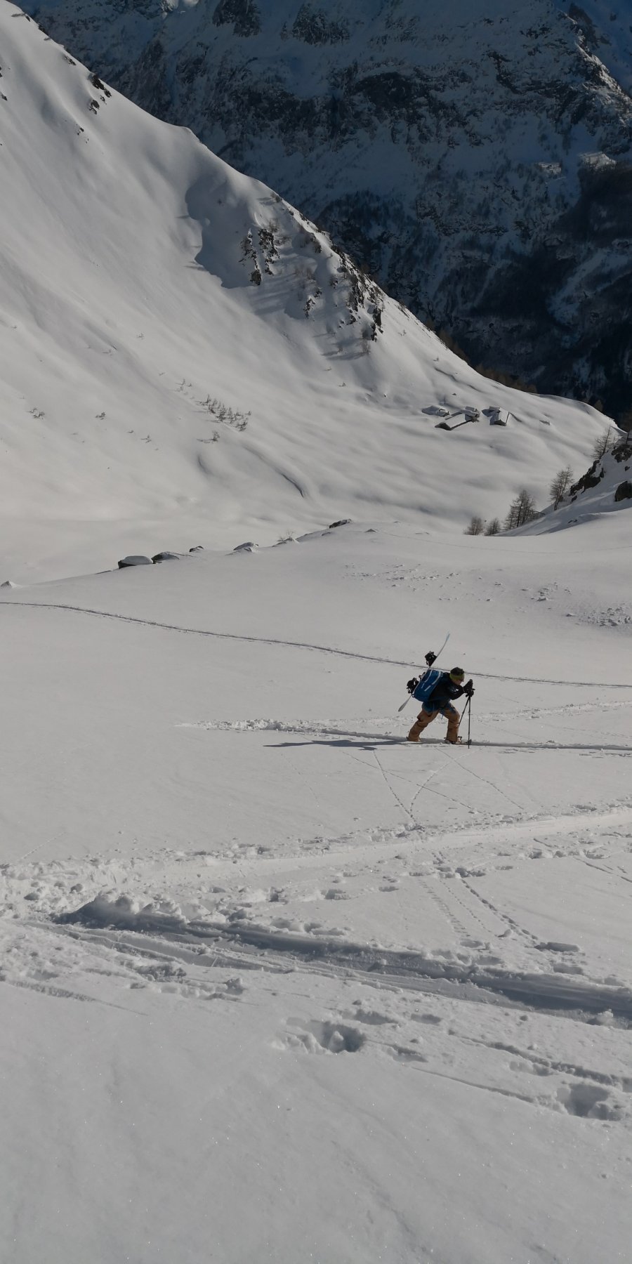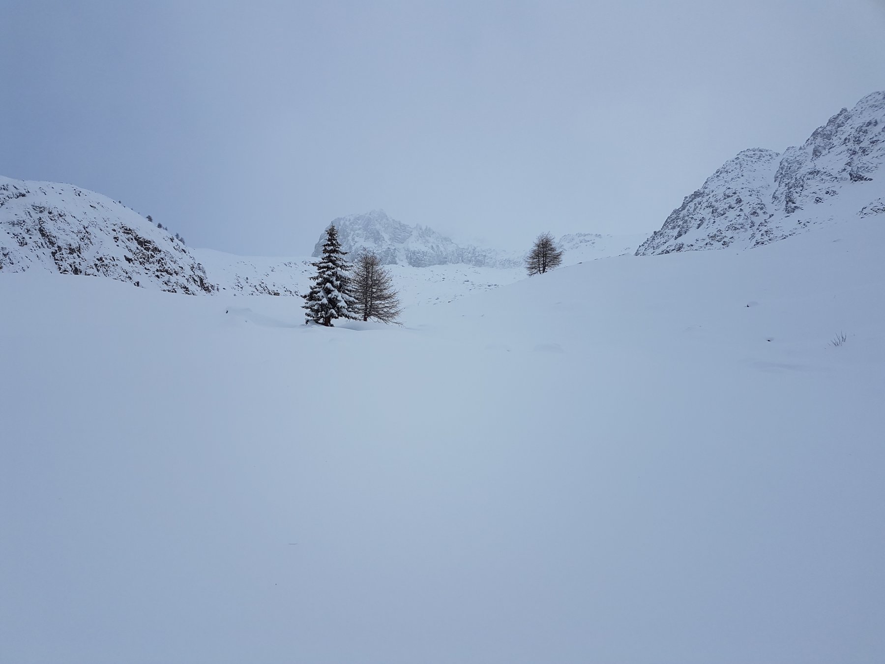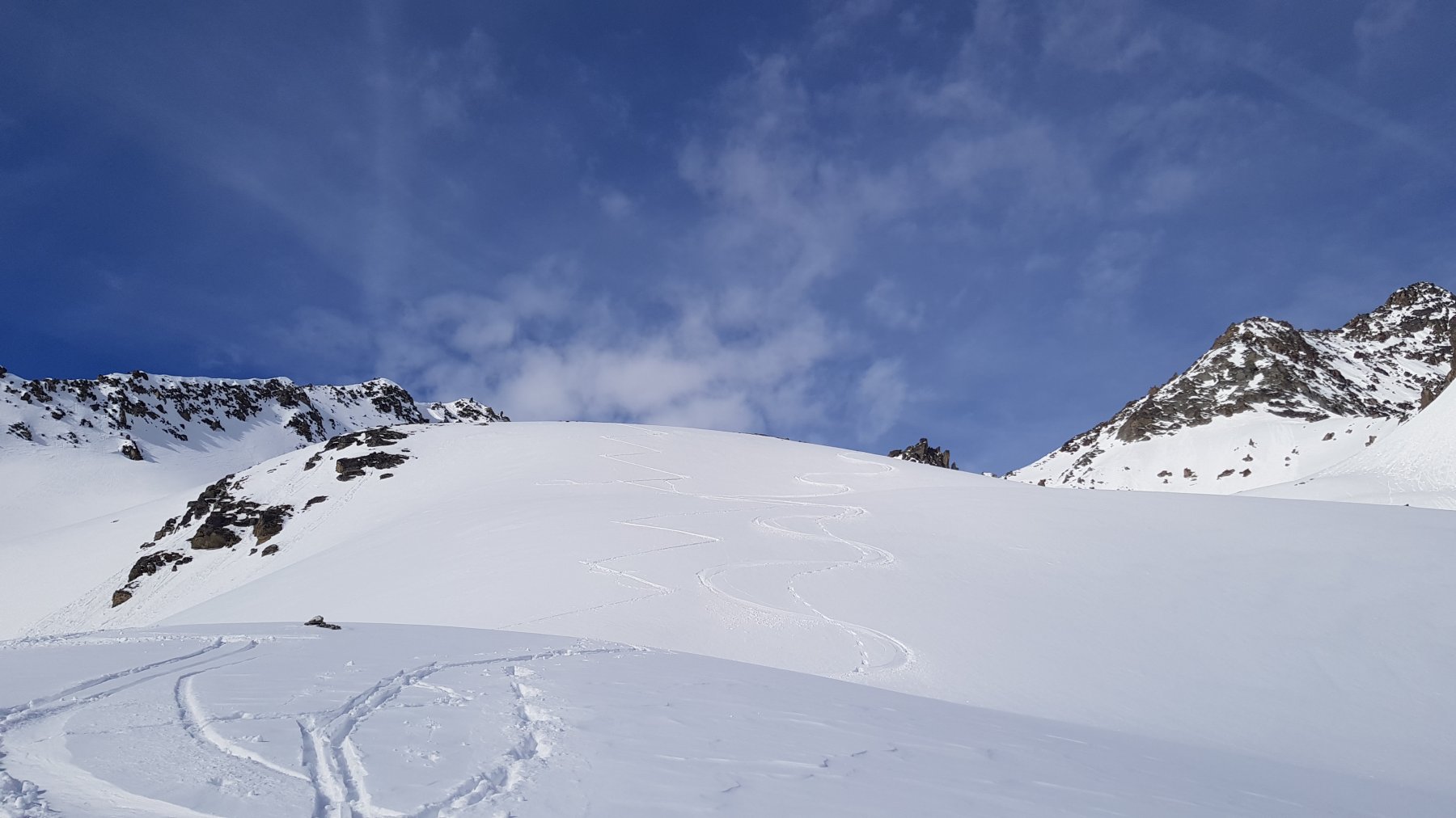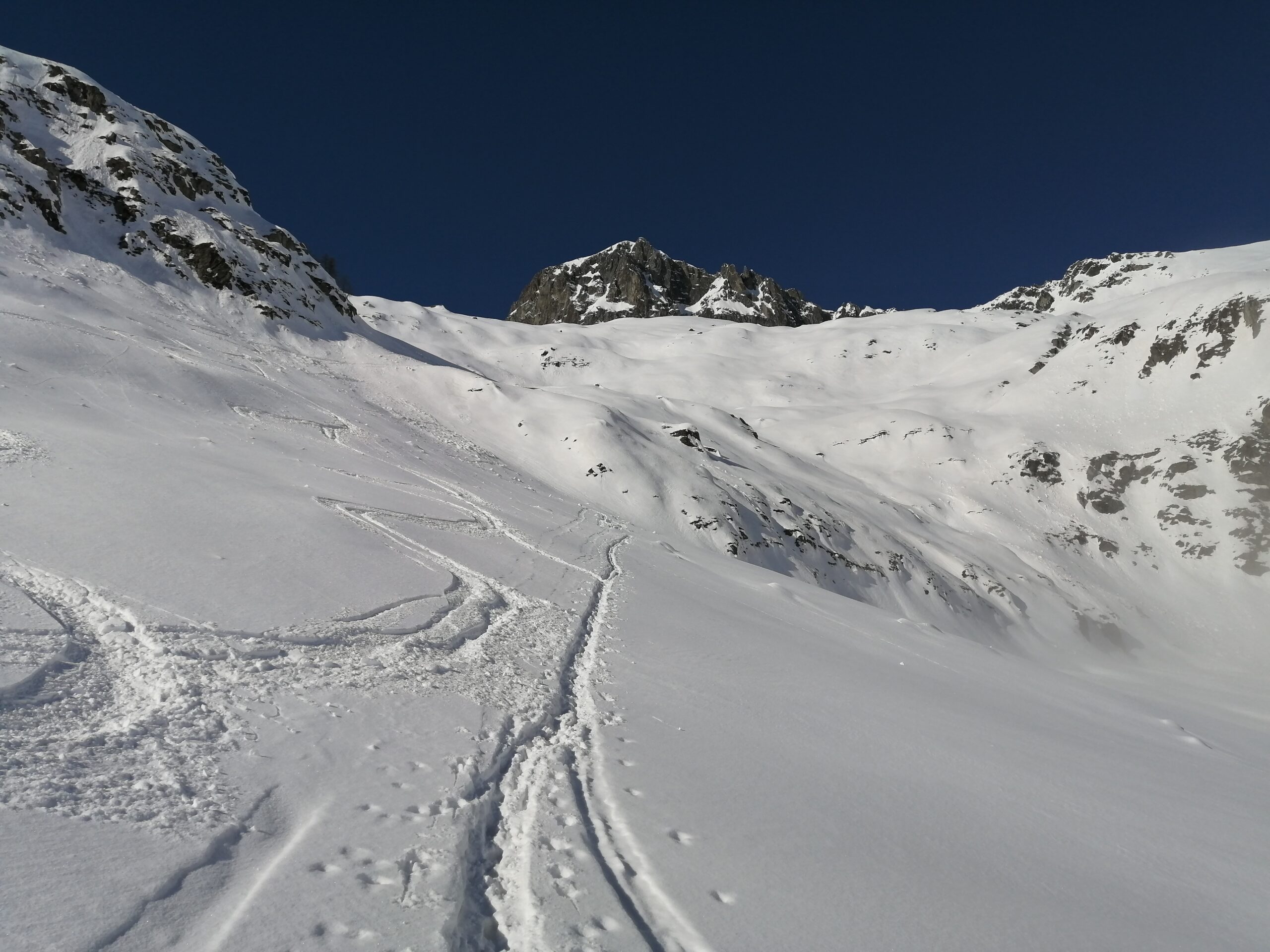 Si prosegue per dossi e pendii poco inclinati e aperti, puntando alla dorsale di sinistra che separa due valloni. Raggiunta la dorsale la si percorre oppure si risale il pendio di destra, per proseguire passando sotto le pareti sud della Tour de la Tsa.
